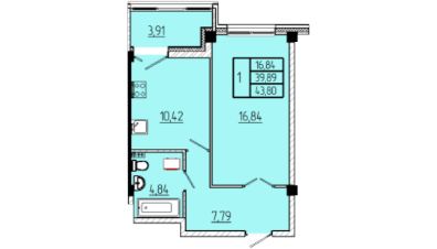 Продаётся 1-комнатная квартира в строящемся доме (Строение 3), срок сдачи: III-кв. 2026, общей площадью 43.45 кв.м., на 4 этаже.