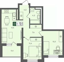 📚 Какая площадь двухкомнатных квартир?