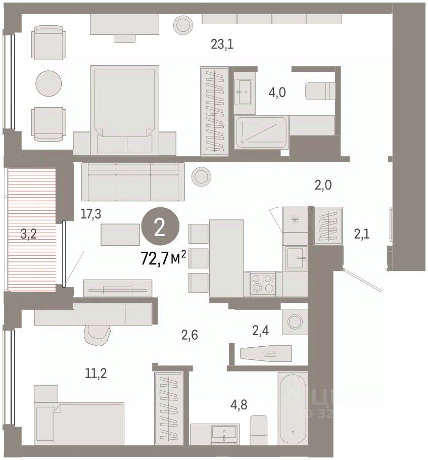 43 м² · Этаж 4 из 4