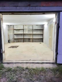 Добротный просторный гараж делали для себя из толстого листового металла 4-5мм. Размер гаража 4 х 6. Стоит на возвышенности на бетонных блоках. Основание гаража толстый швеллер. В гараже есть калитка, интересные замки, металлический пол, полки, электро разводка/ящик/Led освещение. Гараж полностью окрашен, крыша прогерметезирована и окрашена, внутри гаража полностью сделана теплошумоизоляция цельными 2х метровыми пенопластовыми листами. По всей правой стороне гаража стоит длинный верстак в виде 4 компьютерных столов.Гараж расположен в хорошем месте в начале кооператива,недалеко от дороги. Ориентировочный адрес Крупской,19/1