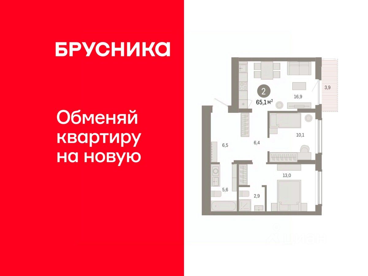 65 м² · Этаж 6 из 8