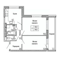 54 м2