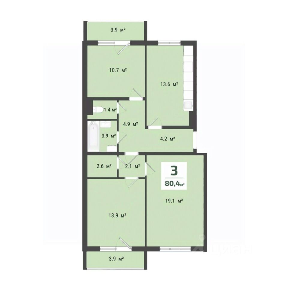 26 м² · Этаж 6 из 9