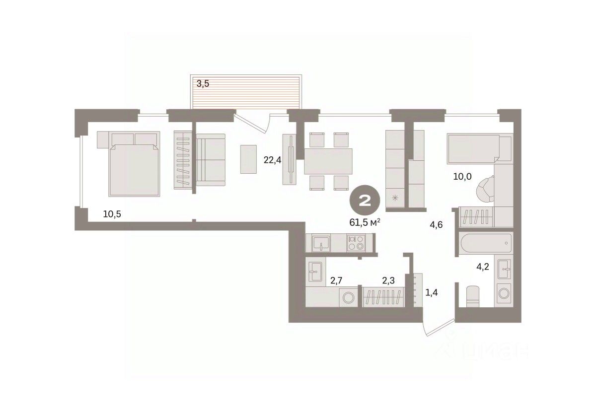 61 м² · Этаж 7 из 8