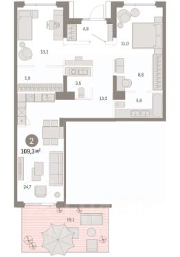 2-к квартира Показать на карте
