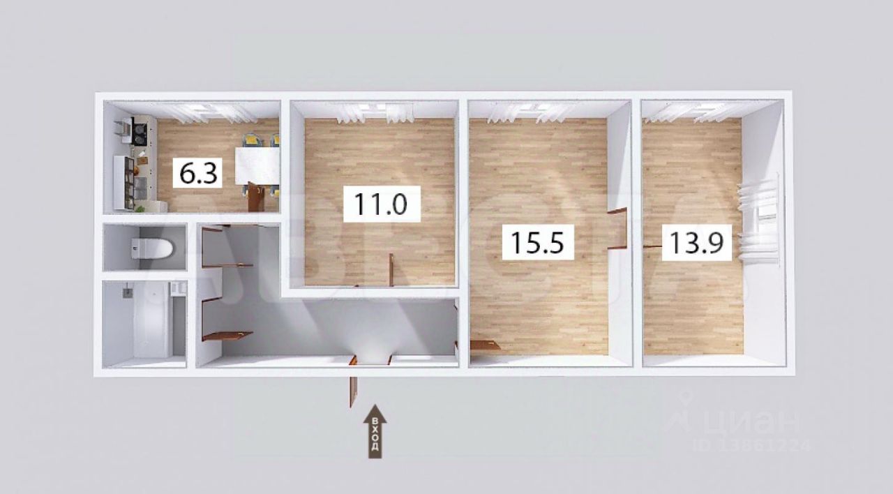 61 м² · Этаж 15 из 16