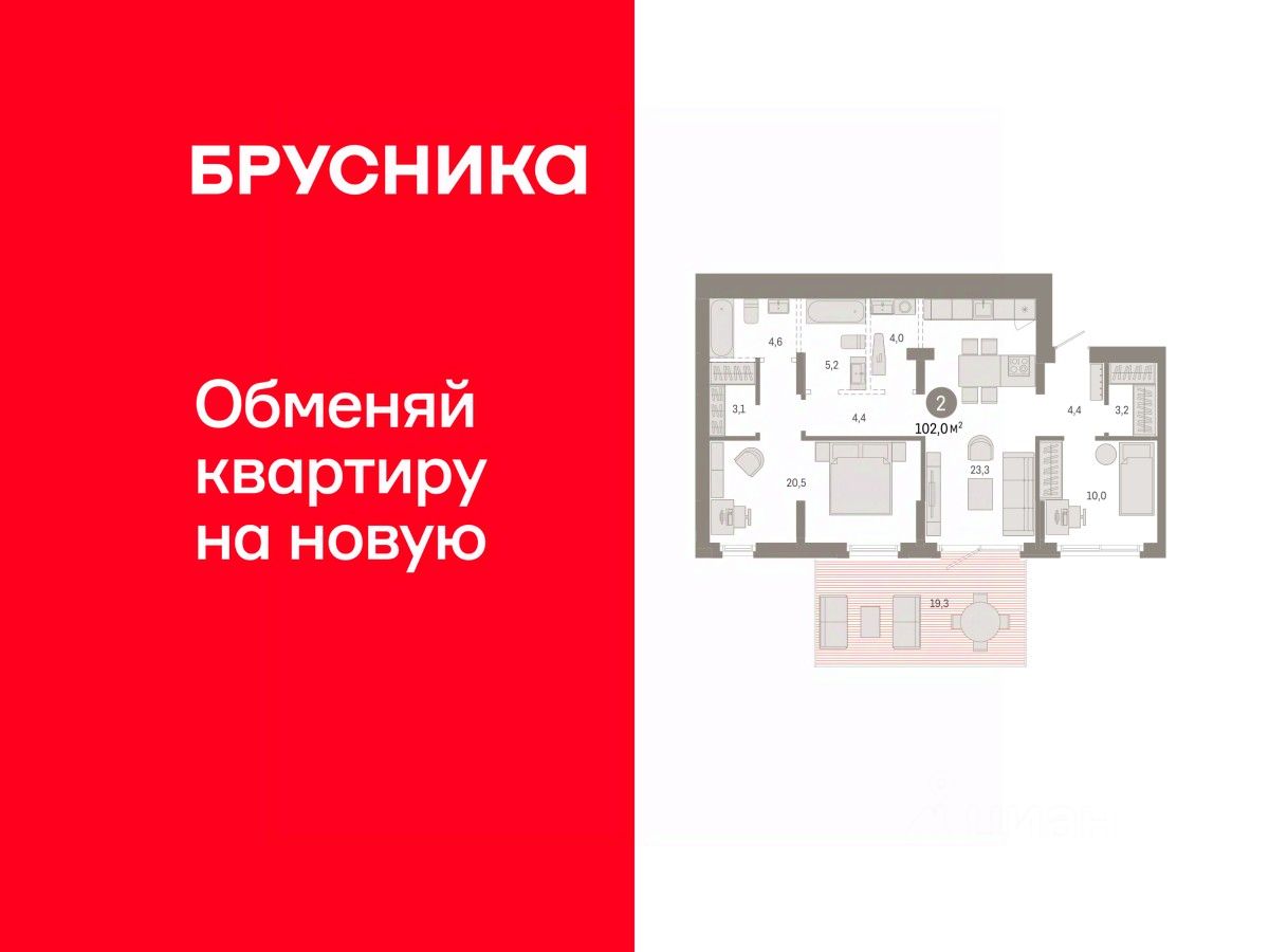 Общая площадь101,96 м2