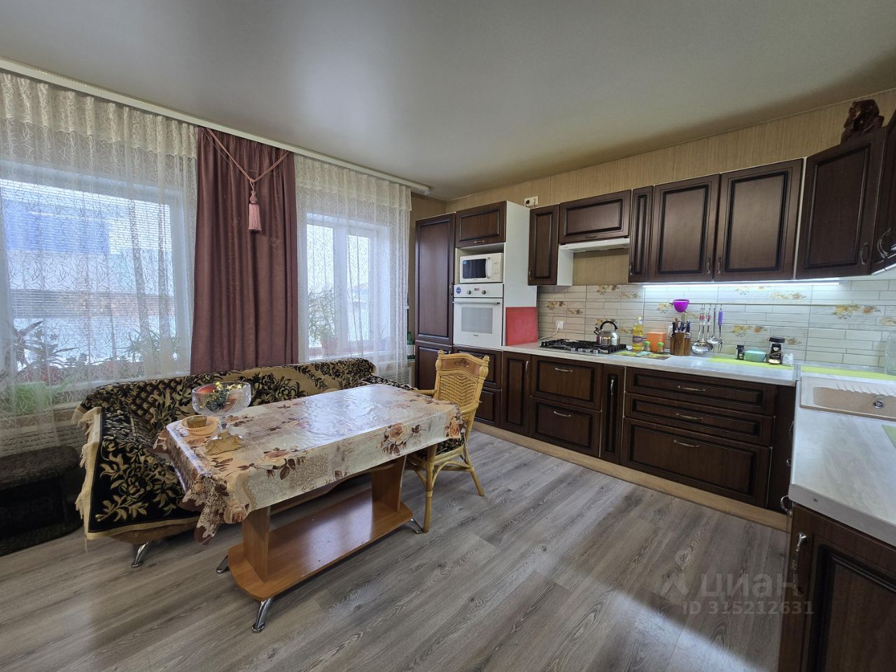 Дом состоит из трех изолированных комнат, просторной кухни, совмещенного санузла и цокольного этажа.