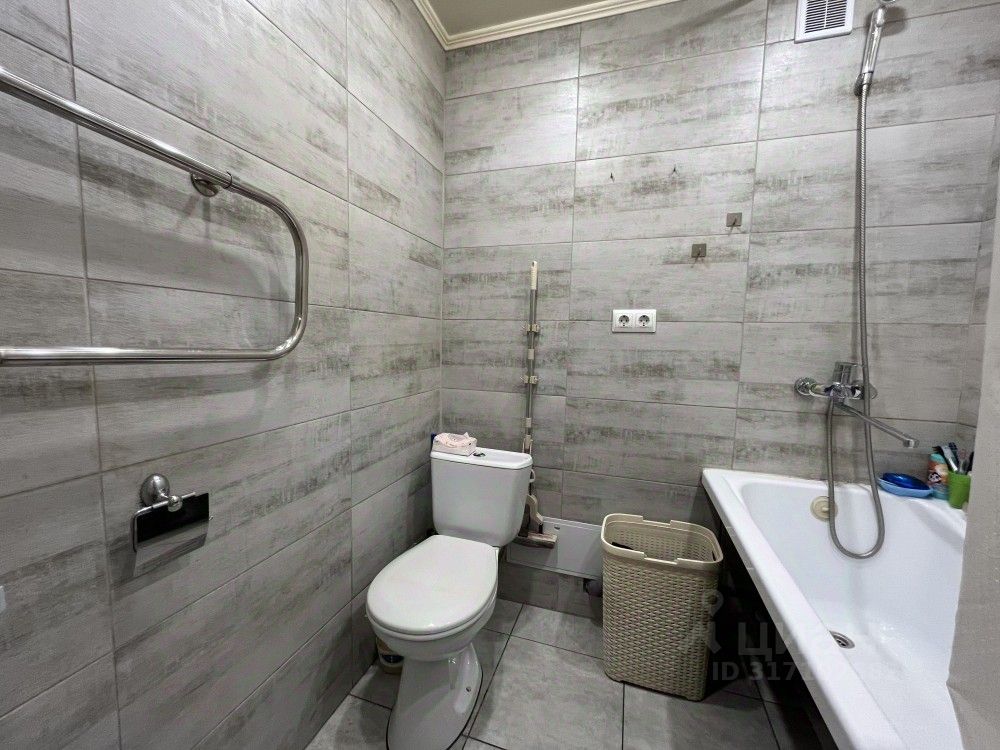 Остаётся кухонный гарнитур с электроплитой, вместительный шкаф-купе в гостиной, сантехническое наполнение ванной комнаты.