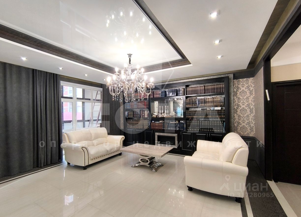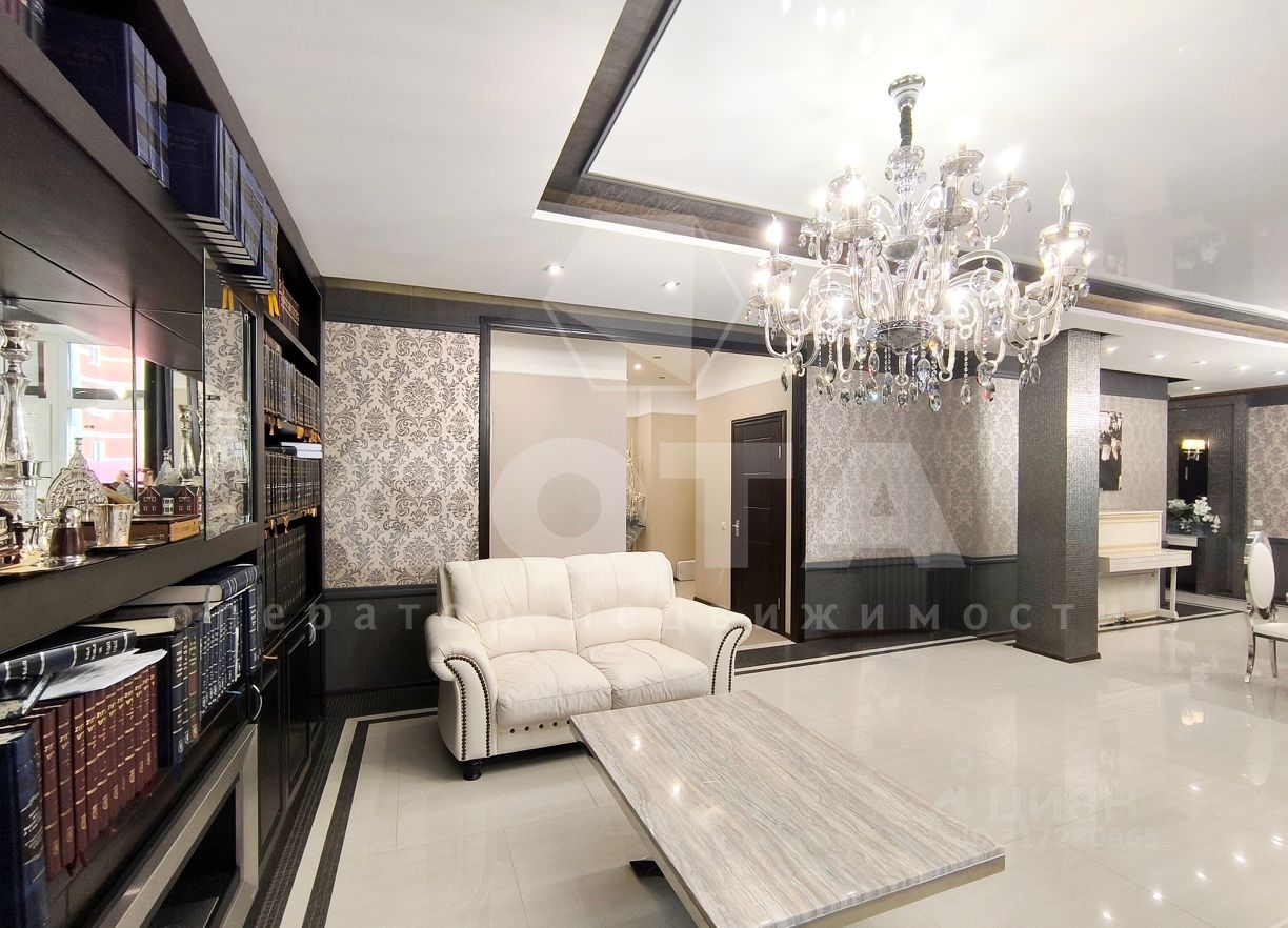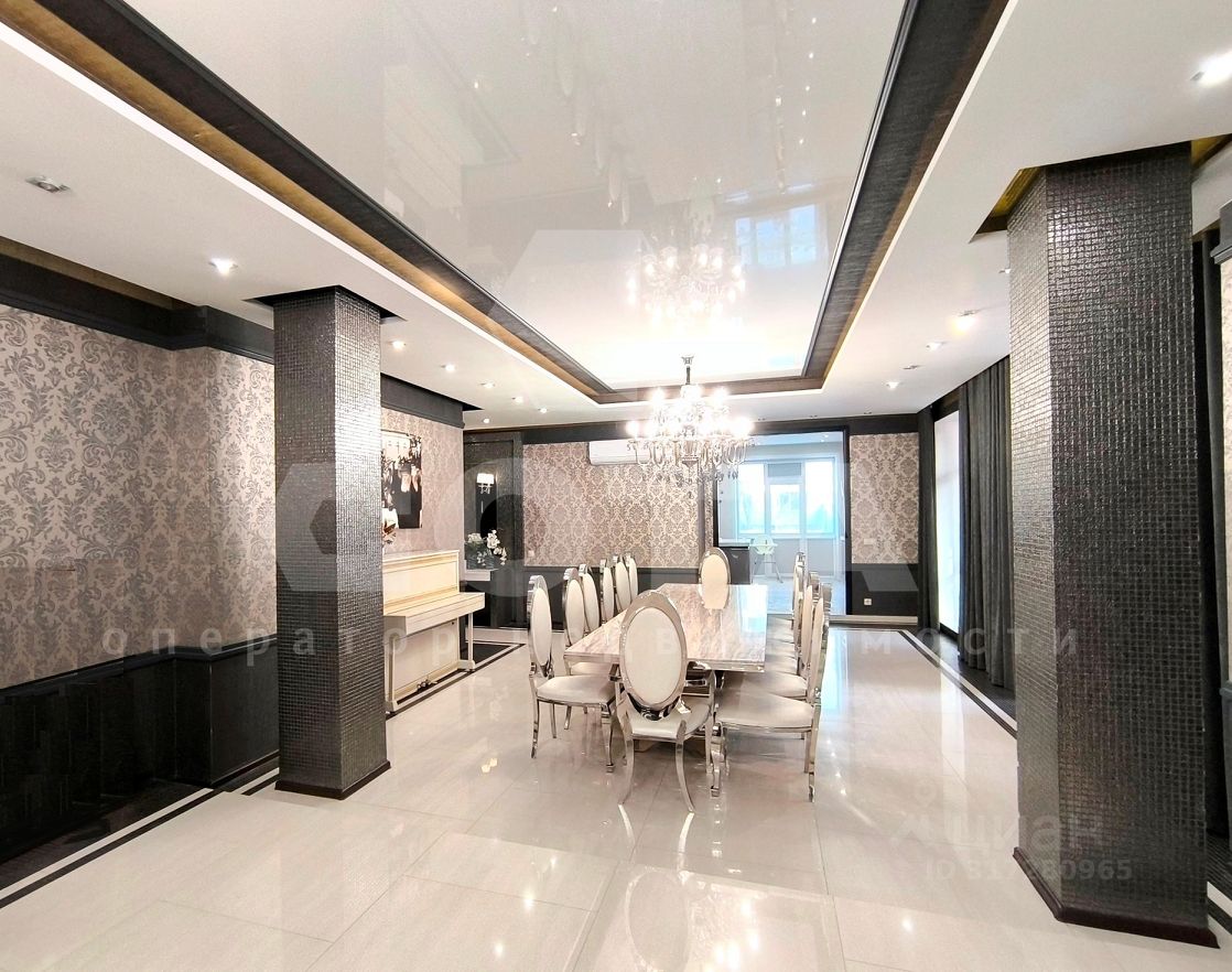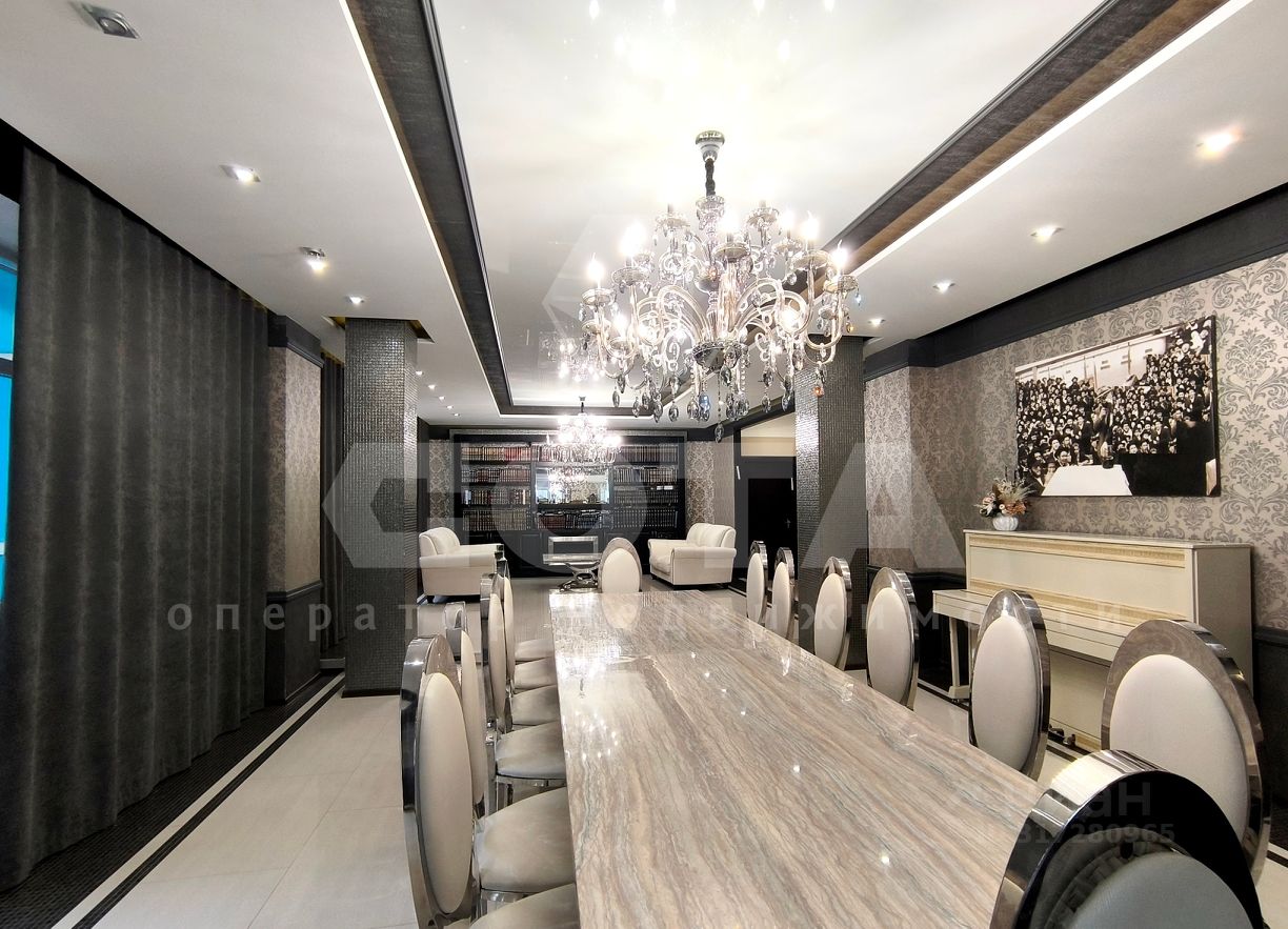Квартира состоит из функциональной кухни с двумя зонами приготовления пищи, просторной гостинной и четырех отдельных спален. Также есть гардеробная, постирочная (хозяйственная ) комната и 4 сан.узла.