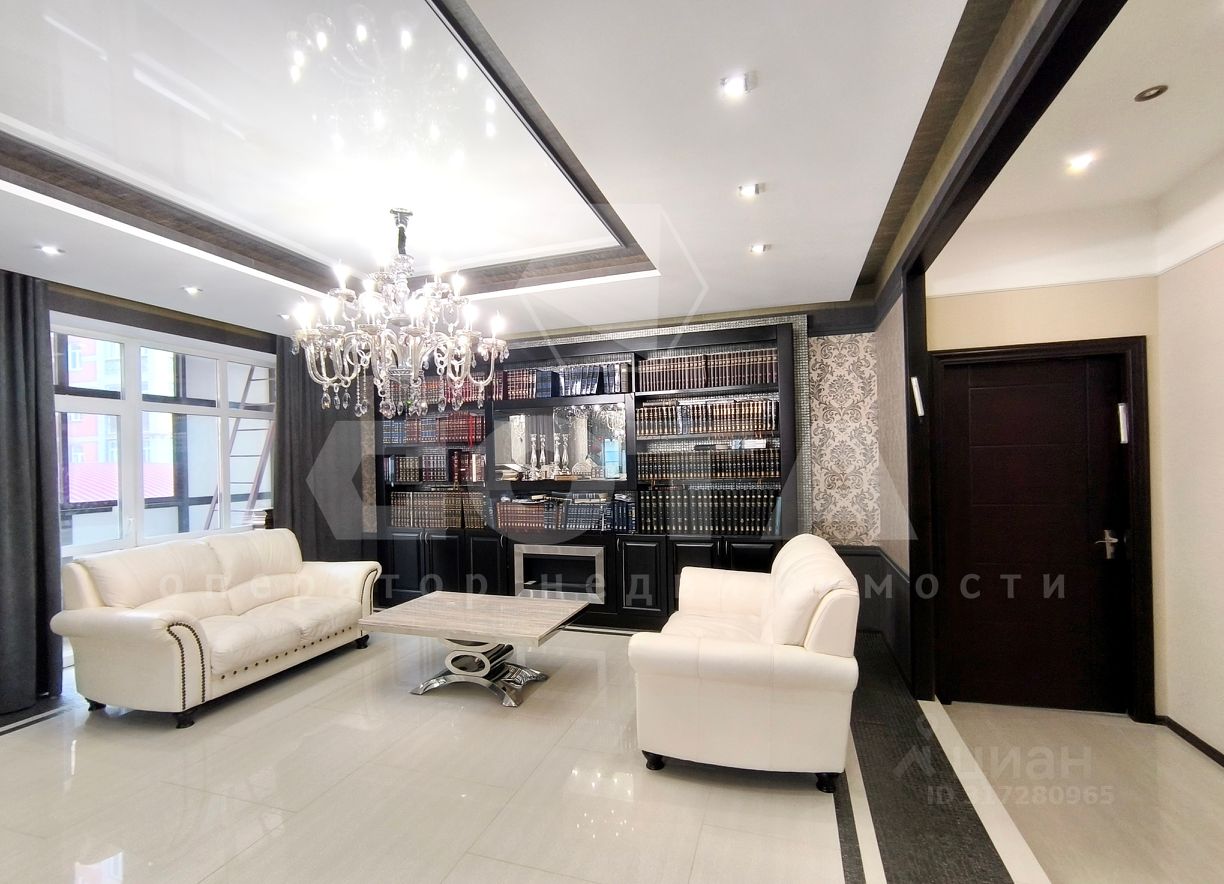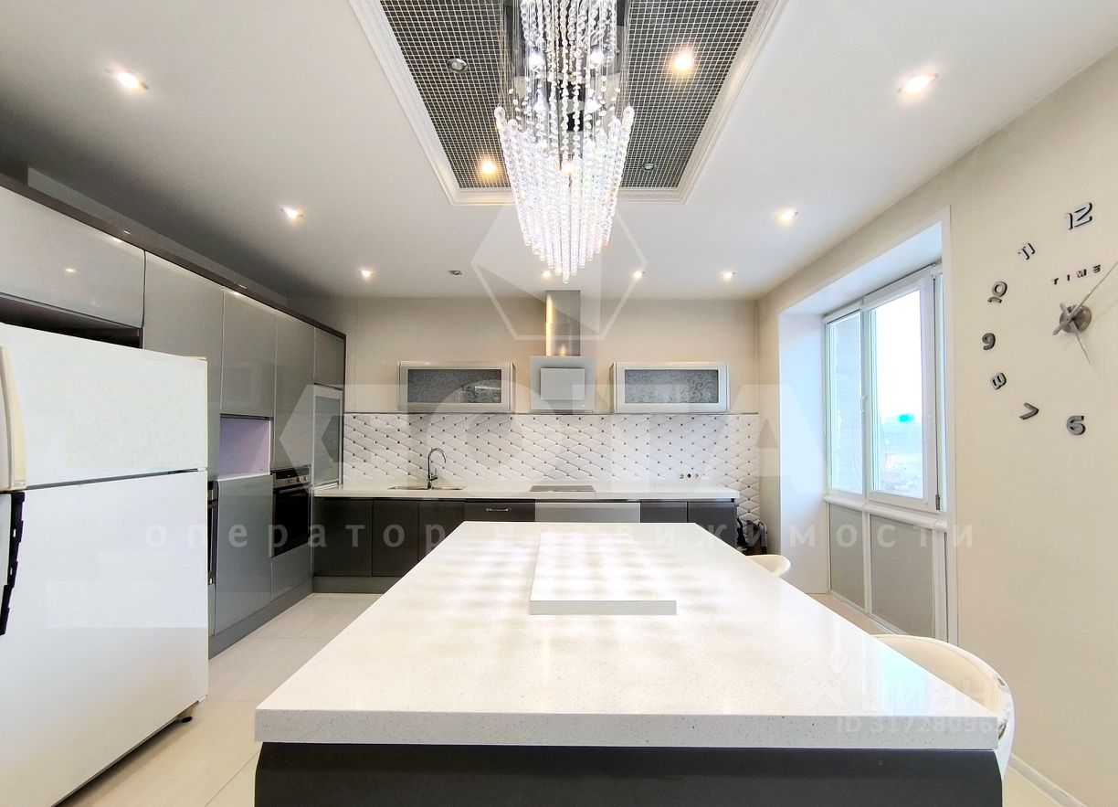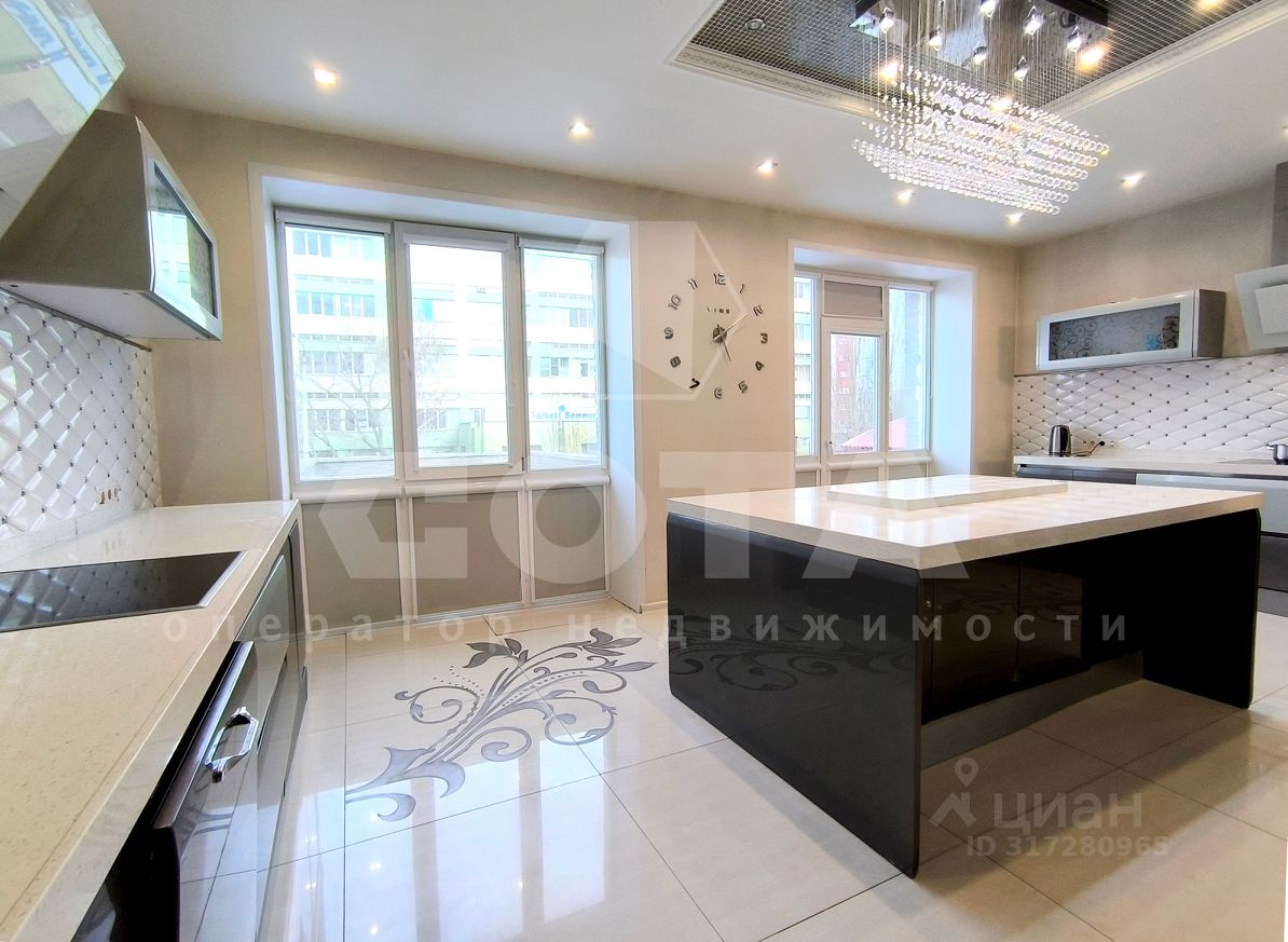 Квартира состоит из функциональной кухни с двумя зонами приготовления пищи, просторной гостинной и четырех отдельных спален. Также есть гардеробная, постирочная (хозяйственная ) комната и 4 сан.узла.