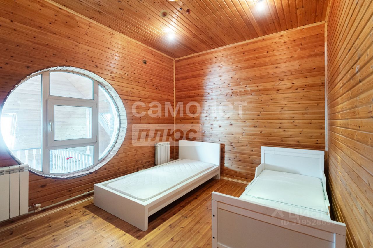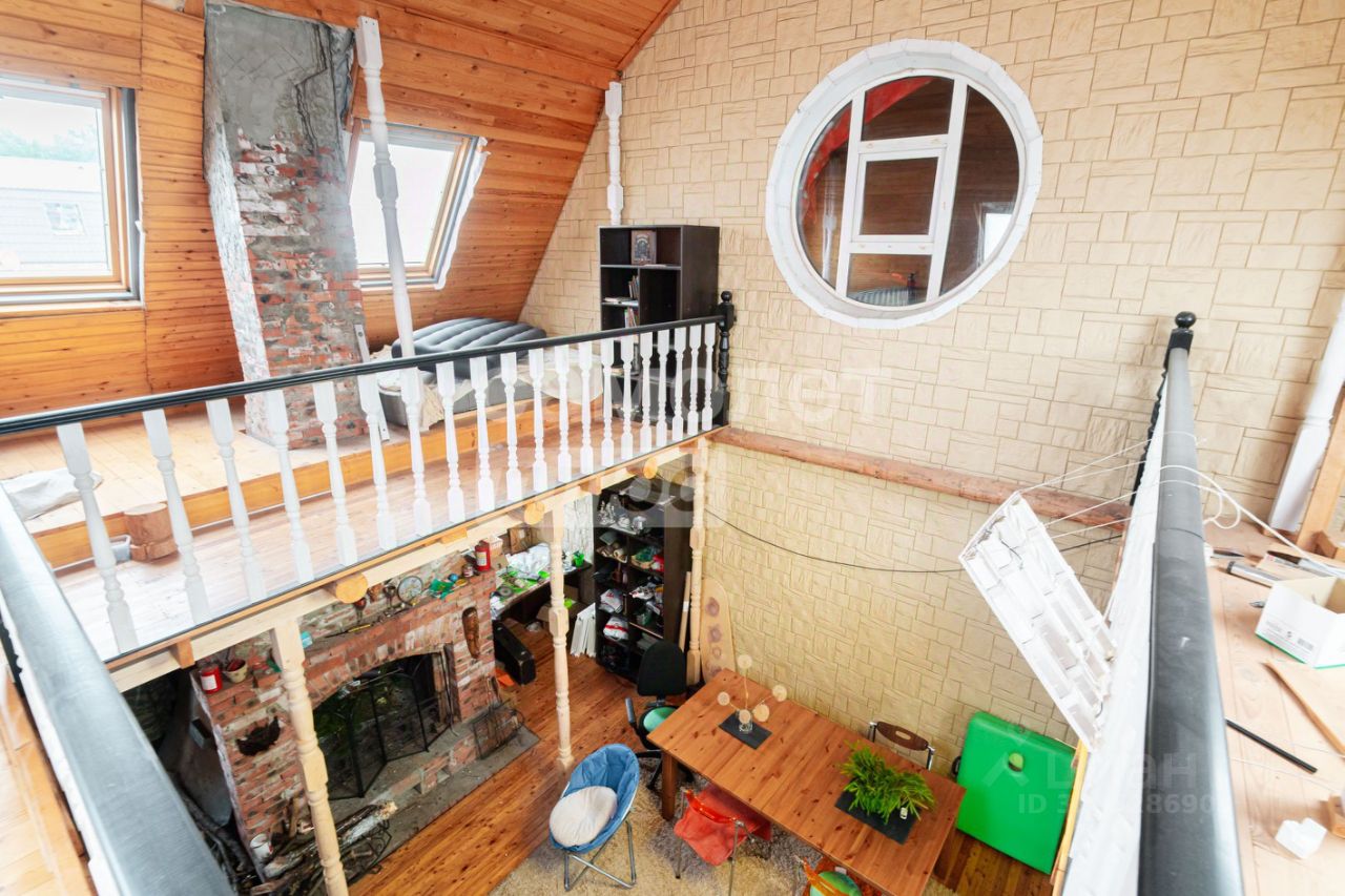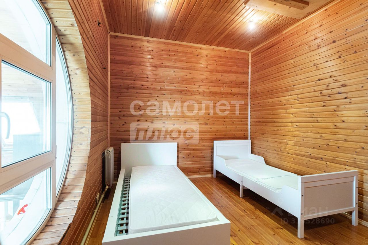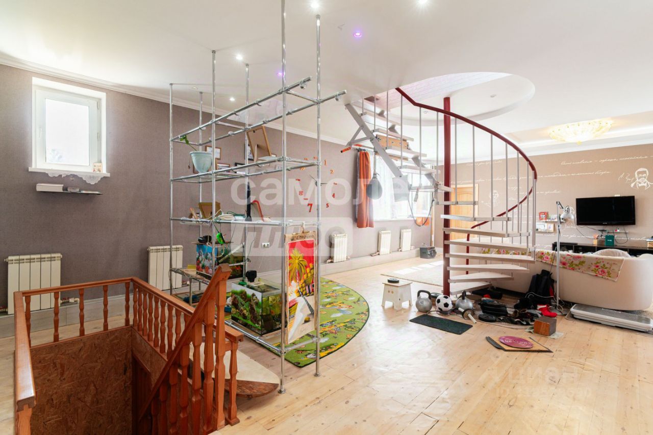 На участке 12 соток расположен трехэтажный дом площадью 324,7 кв. м. На первом этаже расположены: просторная кухня-гостиная, каминный зал, санузел. Второй этаж включает в себя две отдельные спальни, рабочий кабинет. На цокольном этаже: котельная, гараж на два автомобиля.