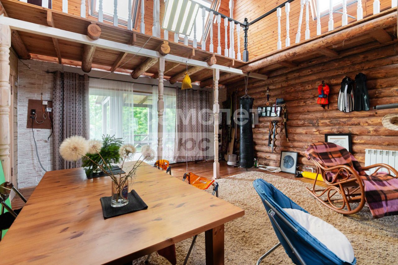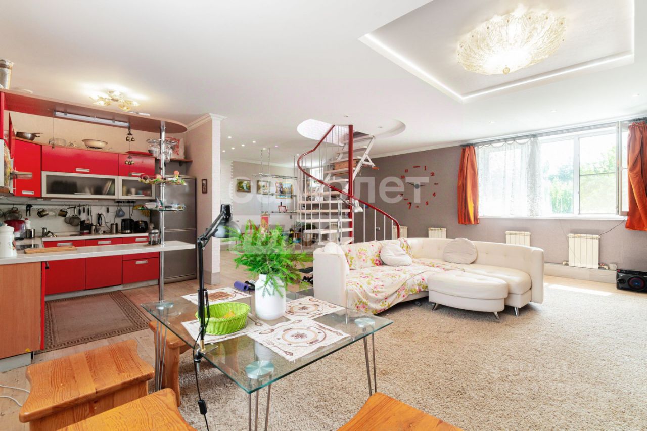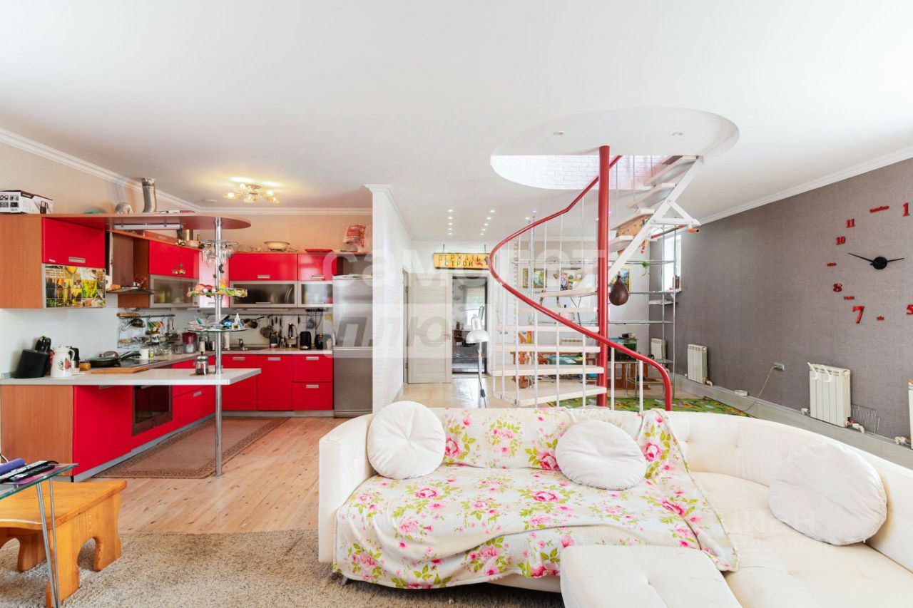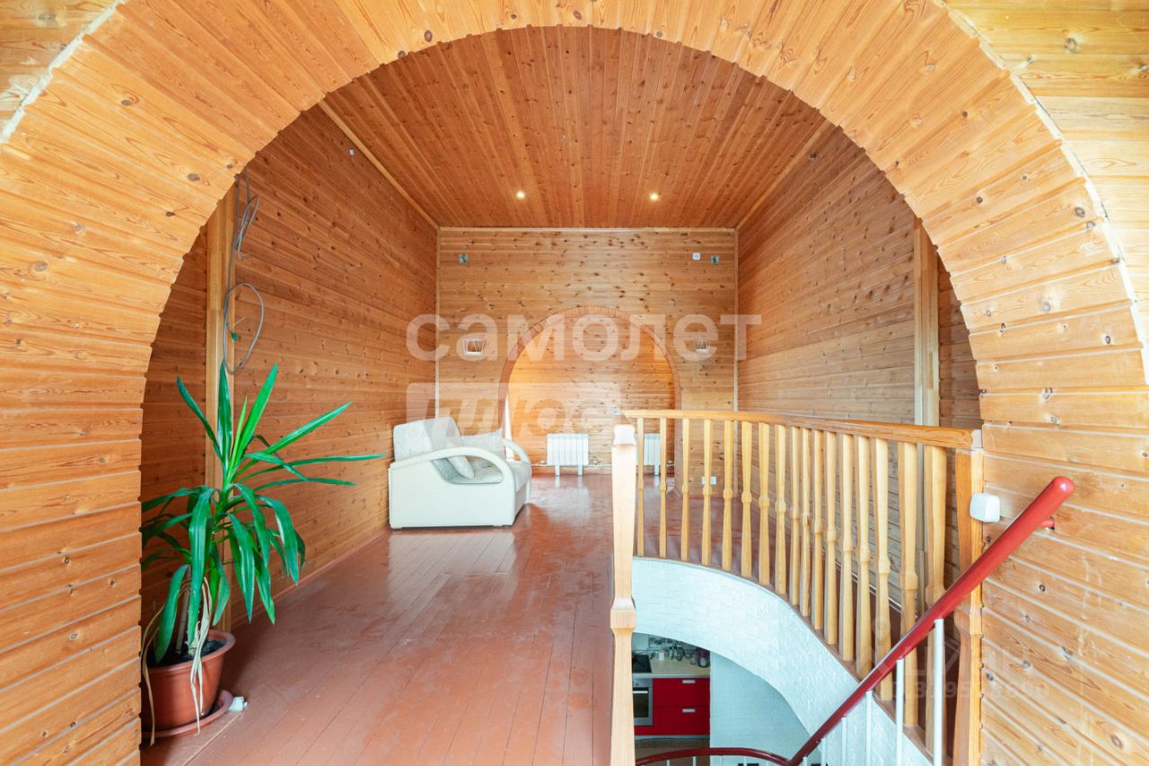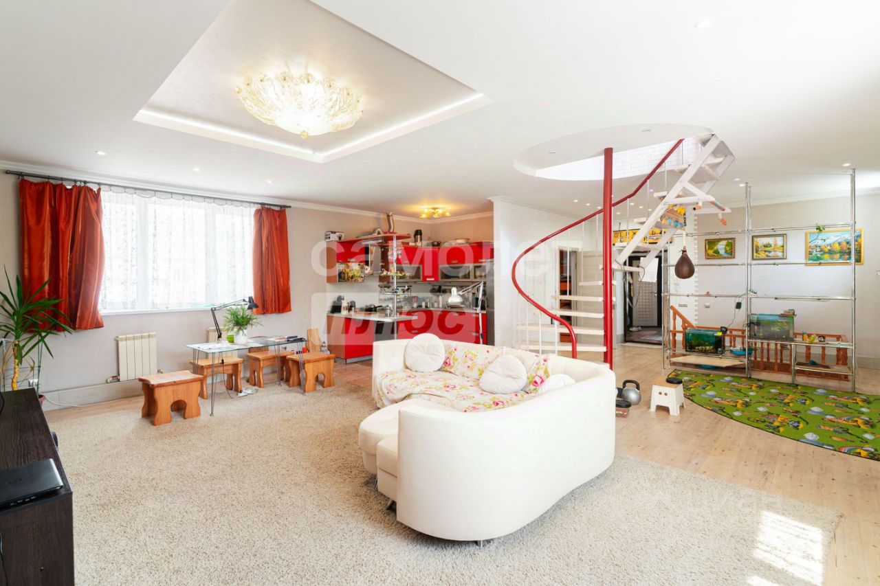 На участке 12 соток расположен трехэтажный дом площадью 324,7 кв. м. На первом этаже расположены: просторная кухня-гостиная, каминный зал, санузел. Второй этаж включает в себя две отдельные спальни, рабочий кабинет. На цокольном этаже: котельная, гараж на два автомобиля.