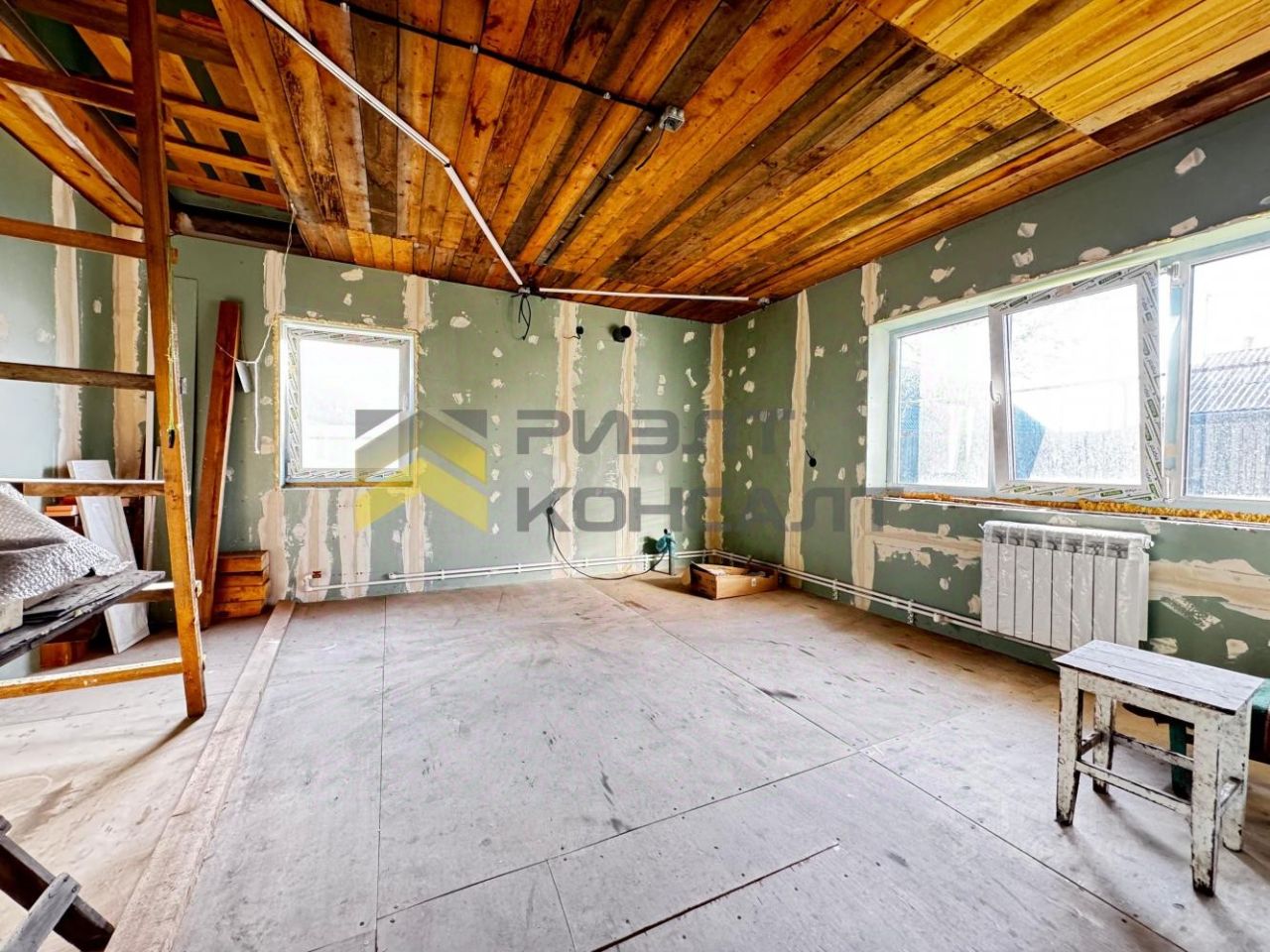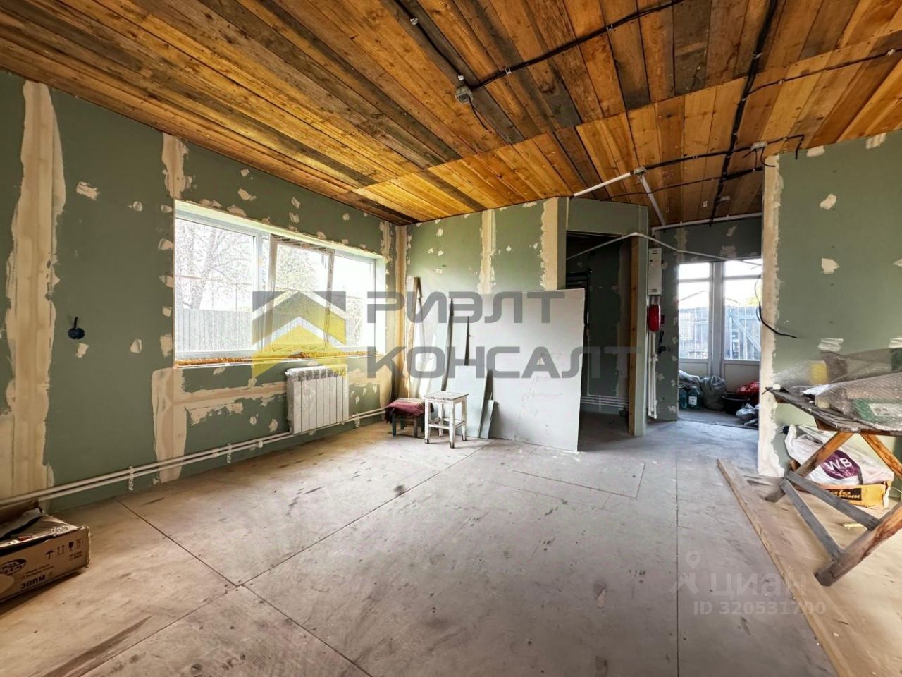 Предлагаем приобрести 1/2 дома на участке площадью 4.07 соток. Расположение дома угловое. Можно организовать 2 входа. Материал стен - насыпной. В этом доме имеются 2 комнаты (8 и 24 кв.м), кухня-прихожая (9 кв м) и санузел (6 кв.м). В дом заведена центральная канализация. Вода из скважины. Электроотопление. Имеется 2 подпола. Оба сухие, проблем с подтоплением не было никогда. Пластиковые окна. В дом заведен центральный водопровод и центральная канализация. Газ по границе участка. Имеется подпол глубиной 2 м. В самом доме осталось завести электричество, установить двери, лестницу (имеется в разобранном виде), натянуть потолки, сделать косметический ремонт. Трубы отопления и электрокотел смонтированы. Выполнен монтаж электропроводки.
