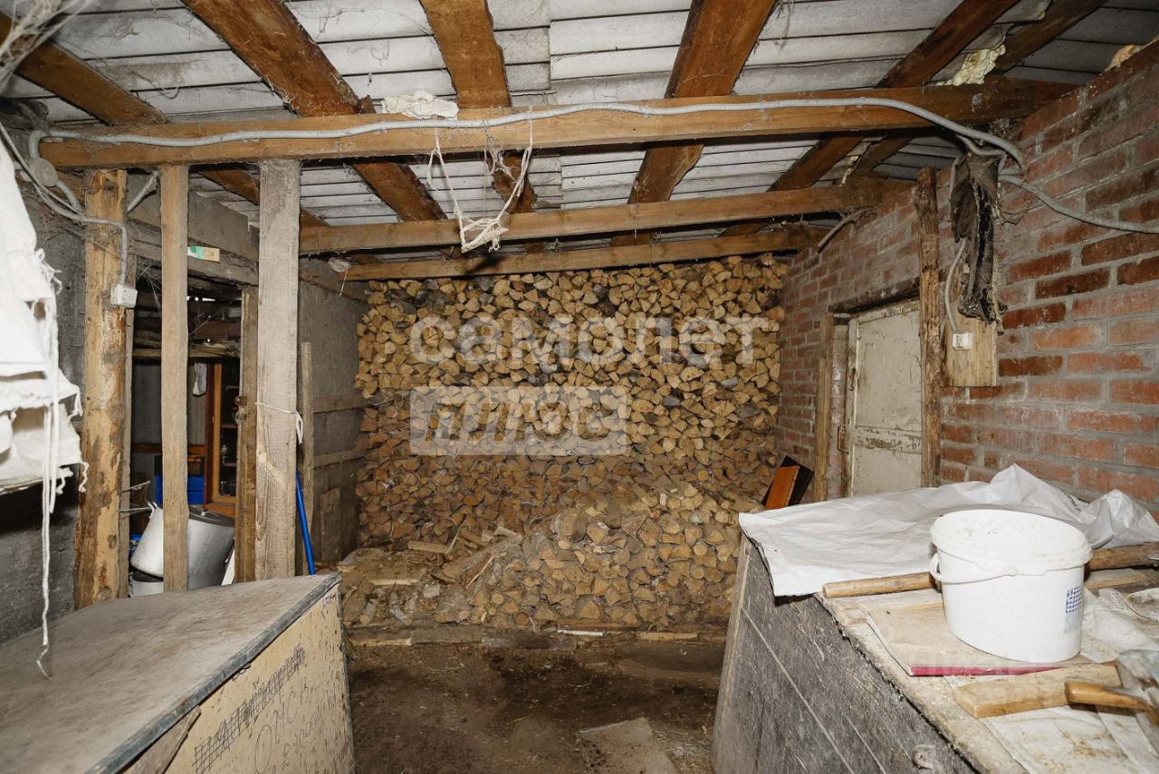 На участке хоз. постройки, сараи, гараж, дровница, большая баня, погреб.