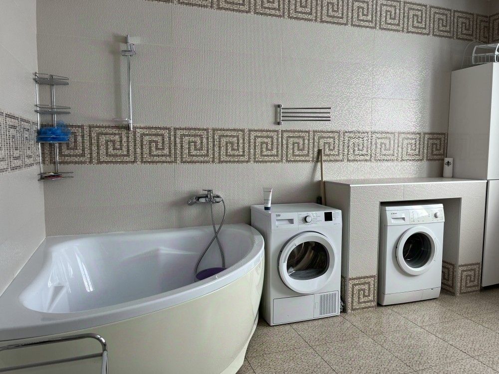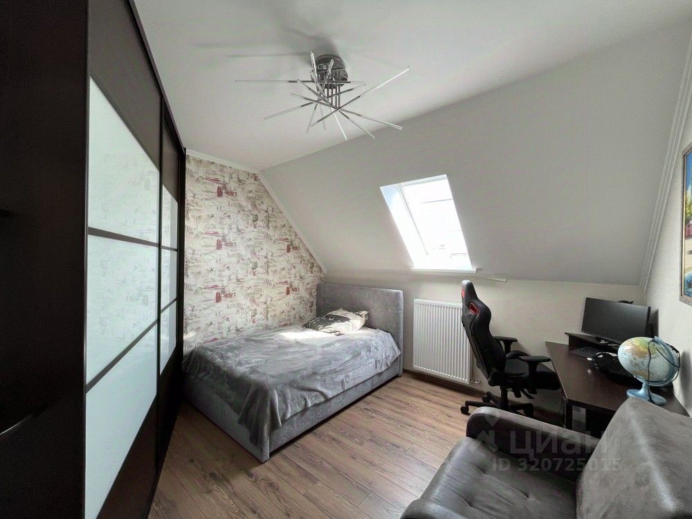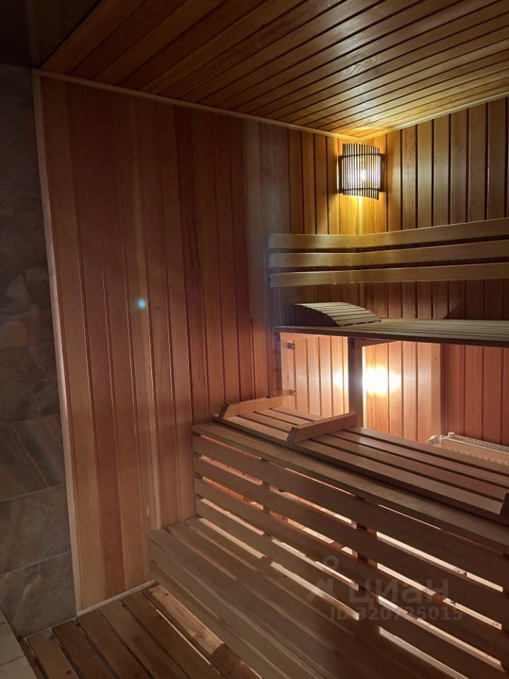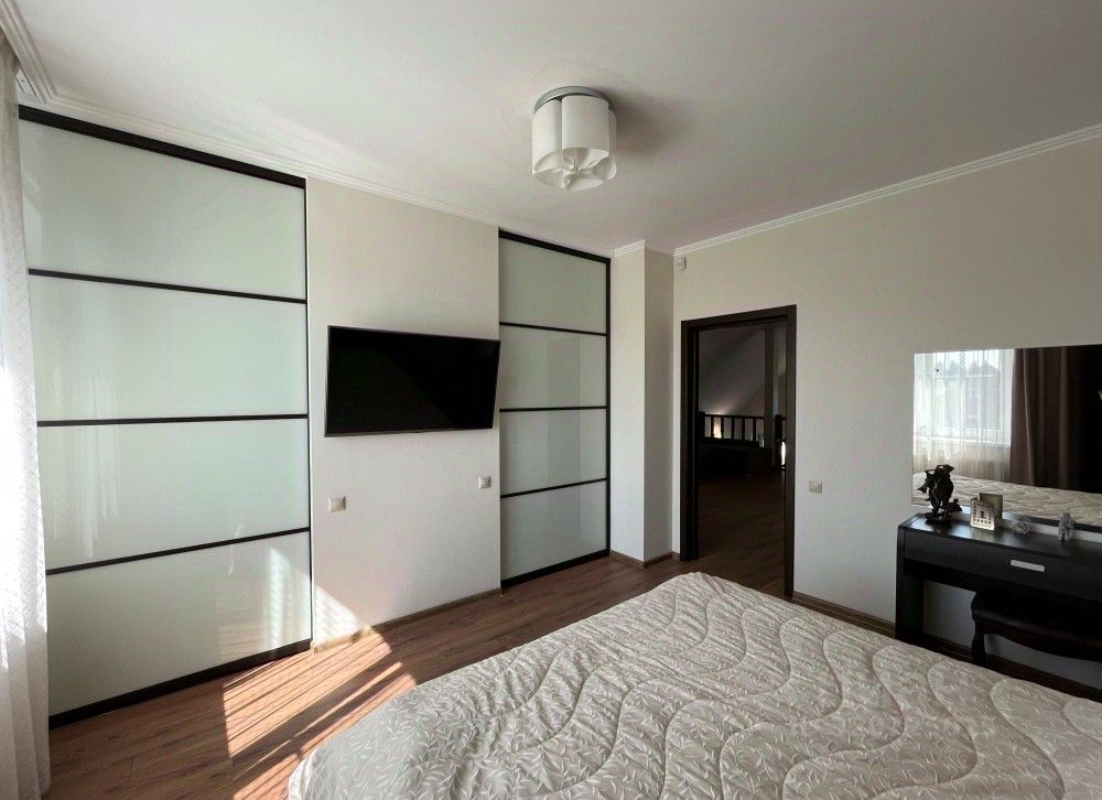 На земельном участке 15 соток располагается двухэтажный дом, гараж на два авто, большая баня с кухней и гостиной, беседка с зоной барбекю, погреб, игровая площадка для детей. Дом состоит из пяти жилых комнат, двух санузлов, на каждом этаже, нескольких гардеробных, рабочего кабинета, прачечной и большой 25-метровой кухни.
