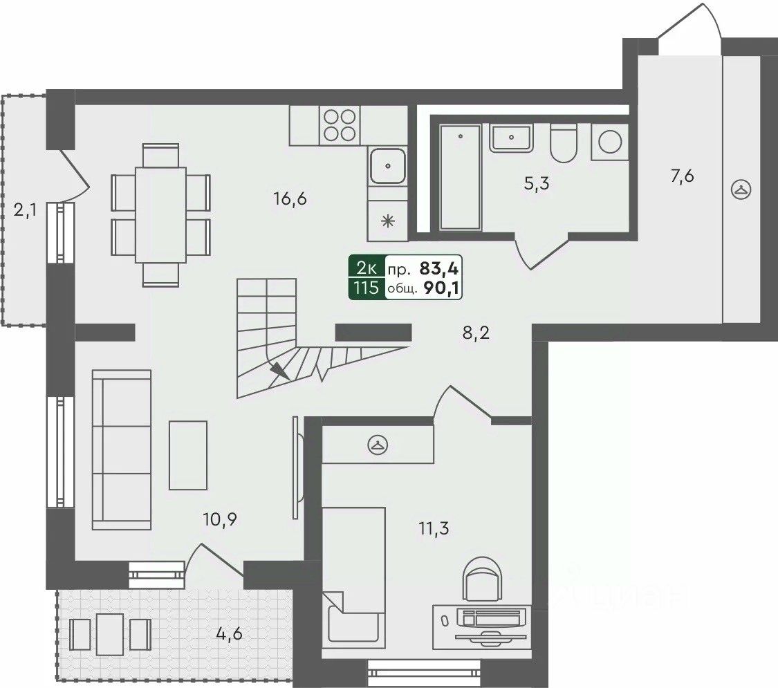 Продаётся 2-комнатная квартира в строящемся доме (ГП 1.1), срок сдачи: II-кв. 2026, общей площадью 90.1 кв.м., на 4 этаже. ЖК расположен в южной части Пушкинского сельского поселения в непосредственной близости от границ г. Омска в 8 км от его центра.