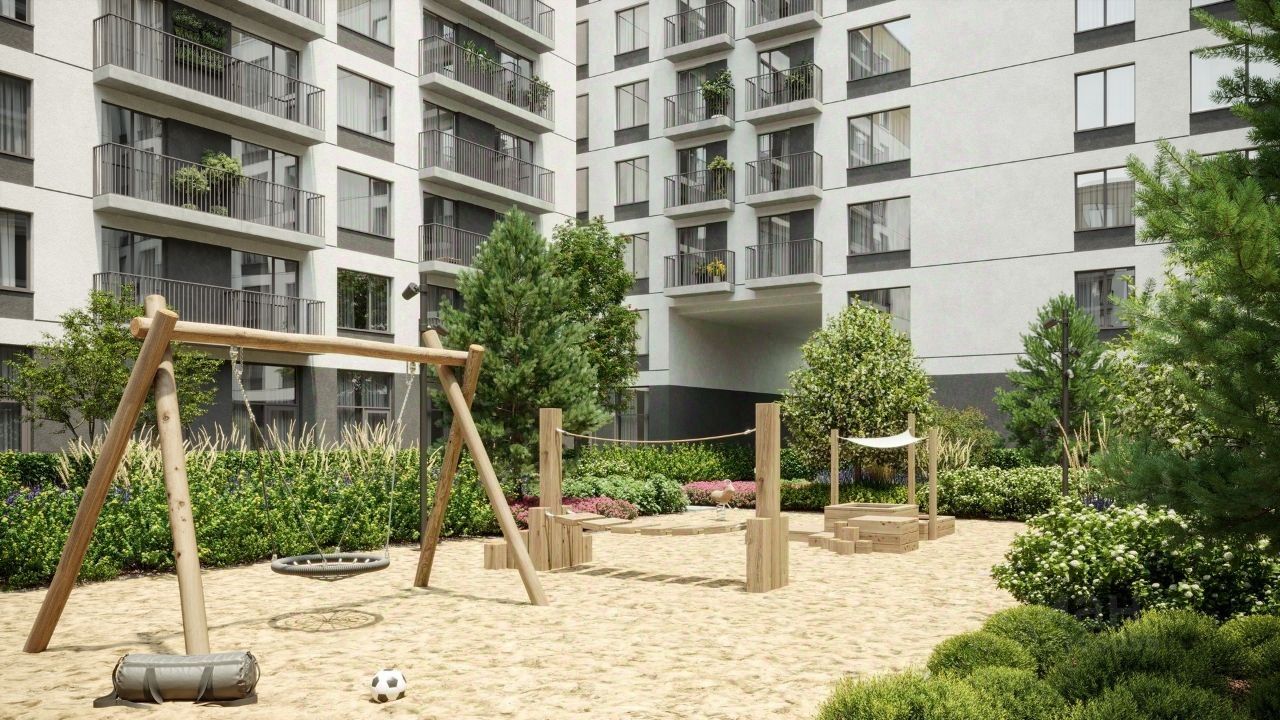 Во дворе нет машин. Это приватное пространство, попасть в которое могут только жители. Здесь спроектированы: променад, лаунжи с садовой мебелью, где, развалившись на шезлонге, можно почитать или поработать, и детские площадки.