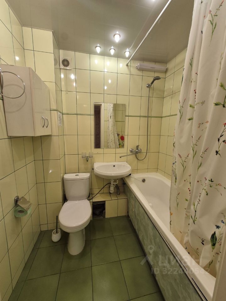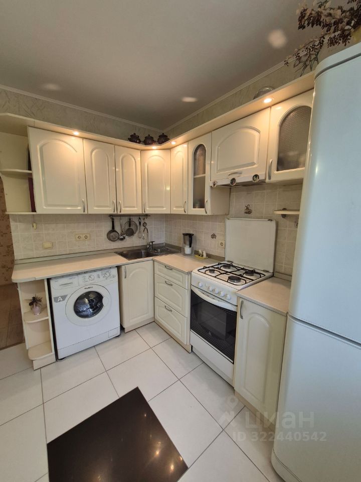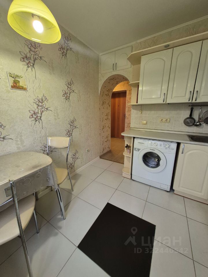 В зале остаётся шкаф купе и диван. Кухня укомплектована кухонным гарнитуром ,холодильником и стиральной машинкой . Санузел совмещён, облицован современным кафелем .