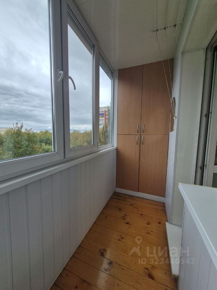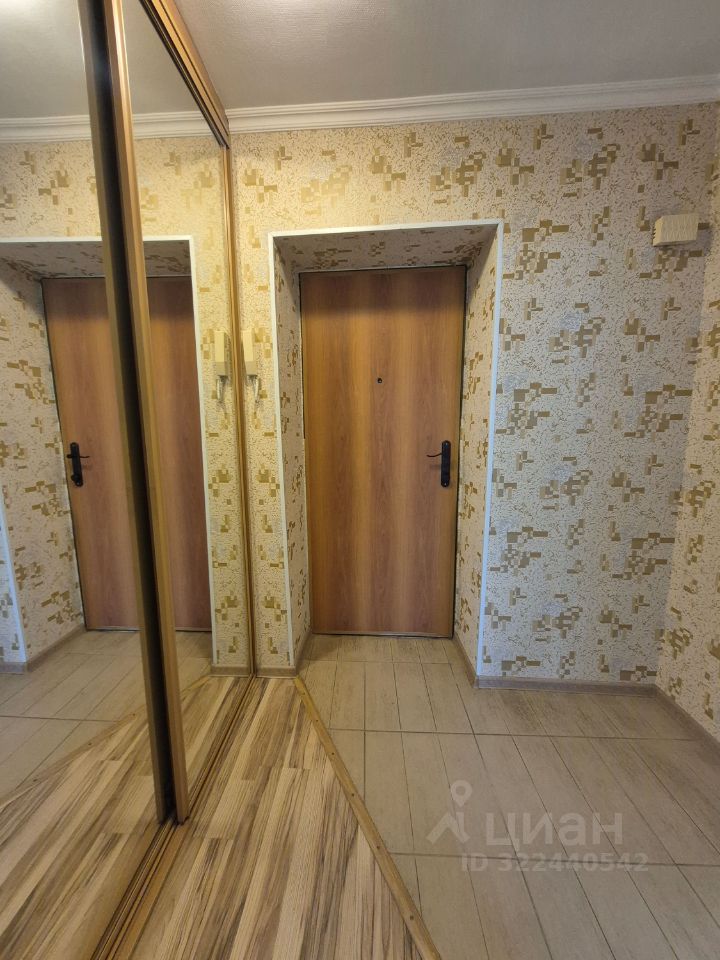 Выход на лоджию из комнаты ,который остеклён и обшит панелями . Просторный коридор ,установлен шкаф - купе.