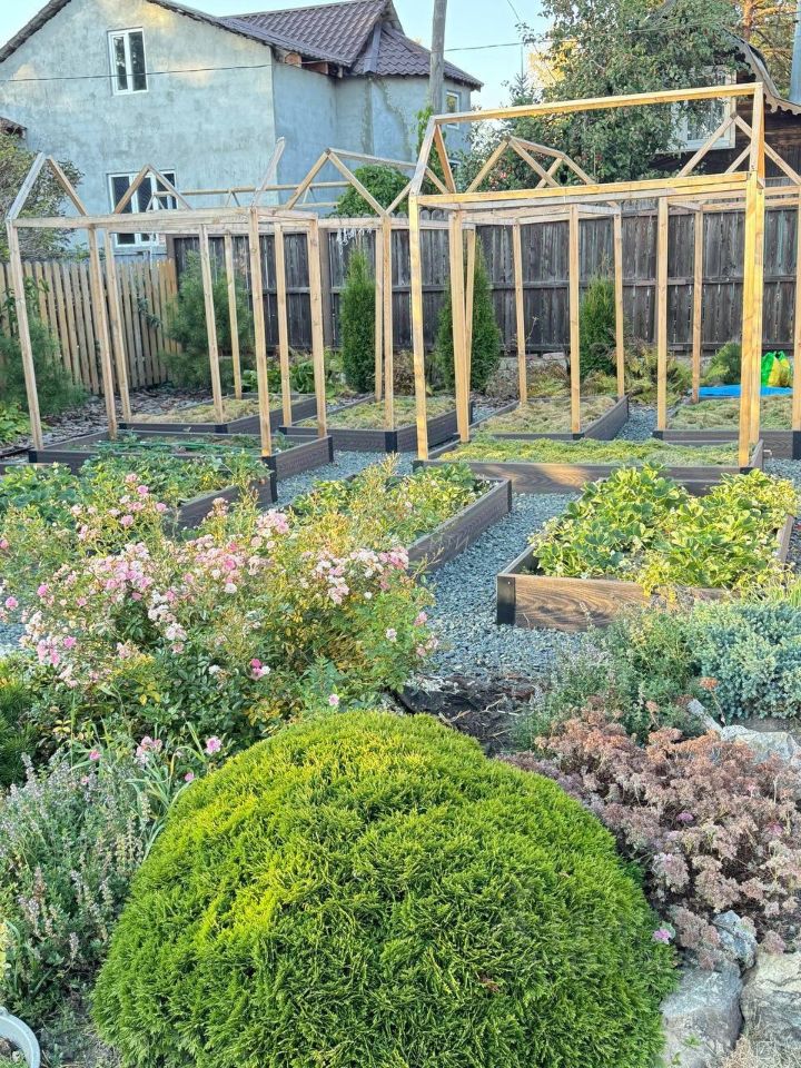 * Парковка на три машины. * Беседка с подсветкой. * Место для мангала и костра. * Бассейн и батут (остаются новому владельцу). * Два газона, цветники, хвойные растения-потрясающий ландшафтный дизайн. * Огороженные грядки с клубникой, плодовые деревья и кусты.