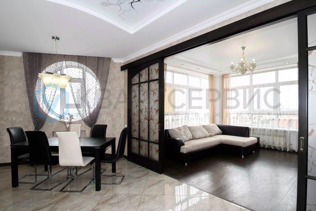 О квартире: Квартира с шикарными видовыми характеристиками на город и р. Иртыш. Функциональная планировка включает в себя: Просторную прихожую, из которой выходят все помещения квартиры, Два санузла, Кухню, оборудованную кухонным гарнитуром и бытовой техникой. Просторную обеденную зону для сбора всей семьи и гостей, Гостиную с панорамным остеклением, Спальню родителей, Спальню с гардеробной, Спальню с выходом на лоджию, Спортивный уголок в детской, Лоджию, которую можно использовать как зону отдыха или разместить велотренажер, Достаточно мест хранения: шкафы- купе и гардеробная. Ремонт: интерьер квартиры выдержан в классическом стиле, использованы при ремонте качественные дорогостоящие материалы. О доме: закрытый жилой комплекс ''Ласточкино гнездо'', ухоженная придомовая территория, подземный паркинг, два лифта, интеллигентные соседи, свое ТСЖ.