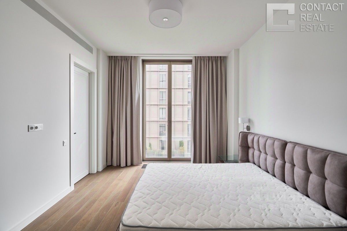 Вашему вниманию предлагается видовая квартира общей площадью 115 м² с двумя спальнями в премиальном комплексе Lucky. Функциональная планировка: кухня-гостиная, мастер-спальня с гардеробной и ванной комнатой, вторая спальня c гардеробной, гостевой санузел, постирочная, просторный холл с нишей для хранения. Угловая квартира, много окон, благодаря чему всегда наполнена солнечным светом, предлагается с премиальной отделкой от застройщика в стиле Grey. Дизайн интерьера от итальянской студии Molteni Group. Установлена кухня и ванная итальянского бренда Dada. На полу деревянная паркетная доска с системой ''тёплый пол''. Санузлы облицованы керамогранитом и бетонной плиткой ''Терраццо''. Из окон открывается панормама на город и во внутреннюю благоустроенную территорию двора. Качество и комфорт жизни владельцев квартир обеспечивает целый комплекс инженерных систем, включающих технологии очистки воздуха и воды. Оборудована система ''Умный дом'', которая позволяет устанавливать индивидуальные параметры температурного режима, влажности и других удобств. Для решения бытовых вопросов жителей работает Служба комфорта на ресепшн. Жилой комплекс расположен на территории общей площадью 4,5 га и имеет хорошо развитую инфраструктуру: подземный паркинг, рестораны, кафе, спортивный центр, фитнес-маркет, образовательный центр, детский сад Cambridge. В непосредственной близости расположены Краснопресненский парк и парк Красногвардейские пруды. [Лот #24279]
