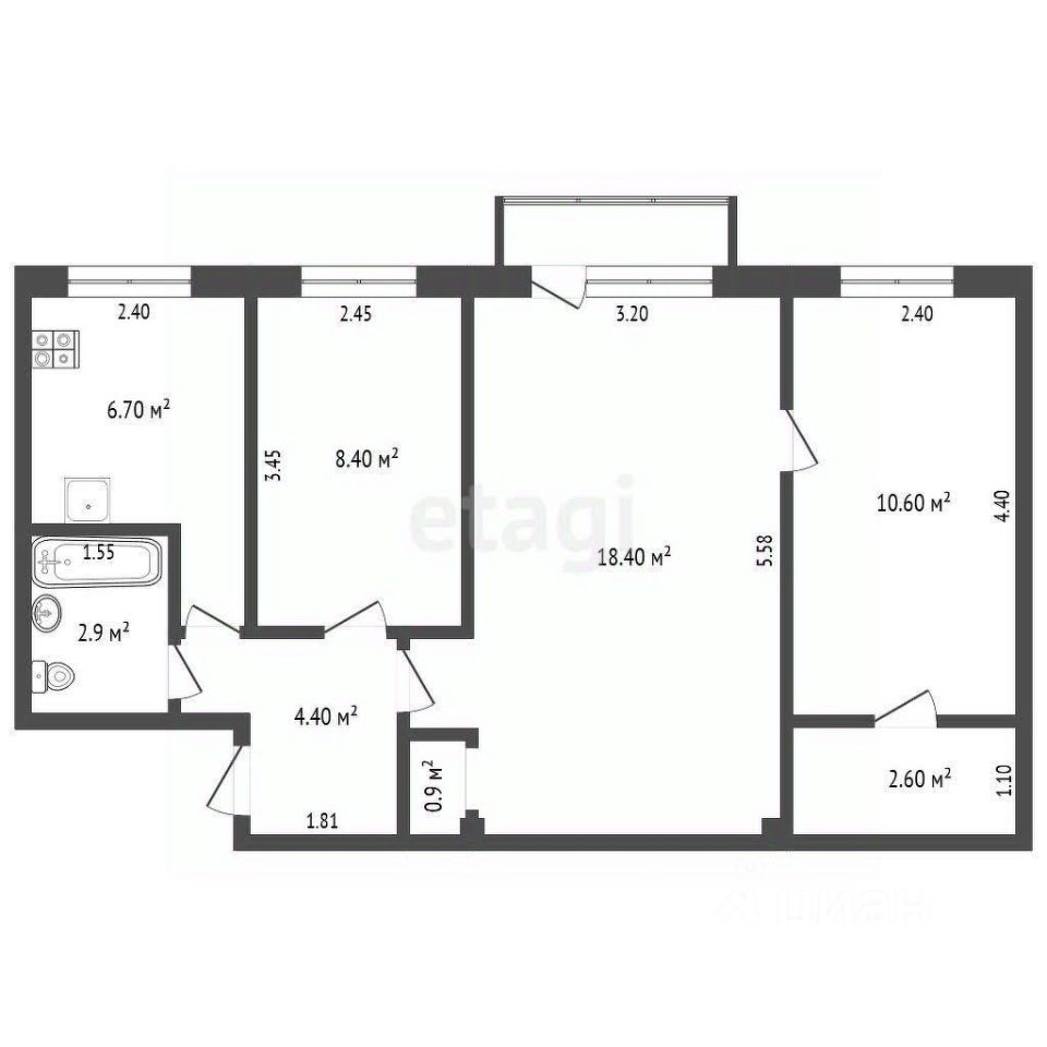 Просторная трехкомнатная квартира с балконом для большой семьи в тихом районе ждёт своих будущих обладателей.