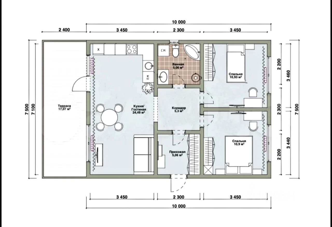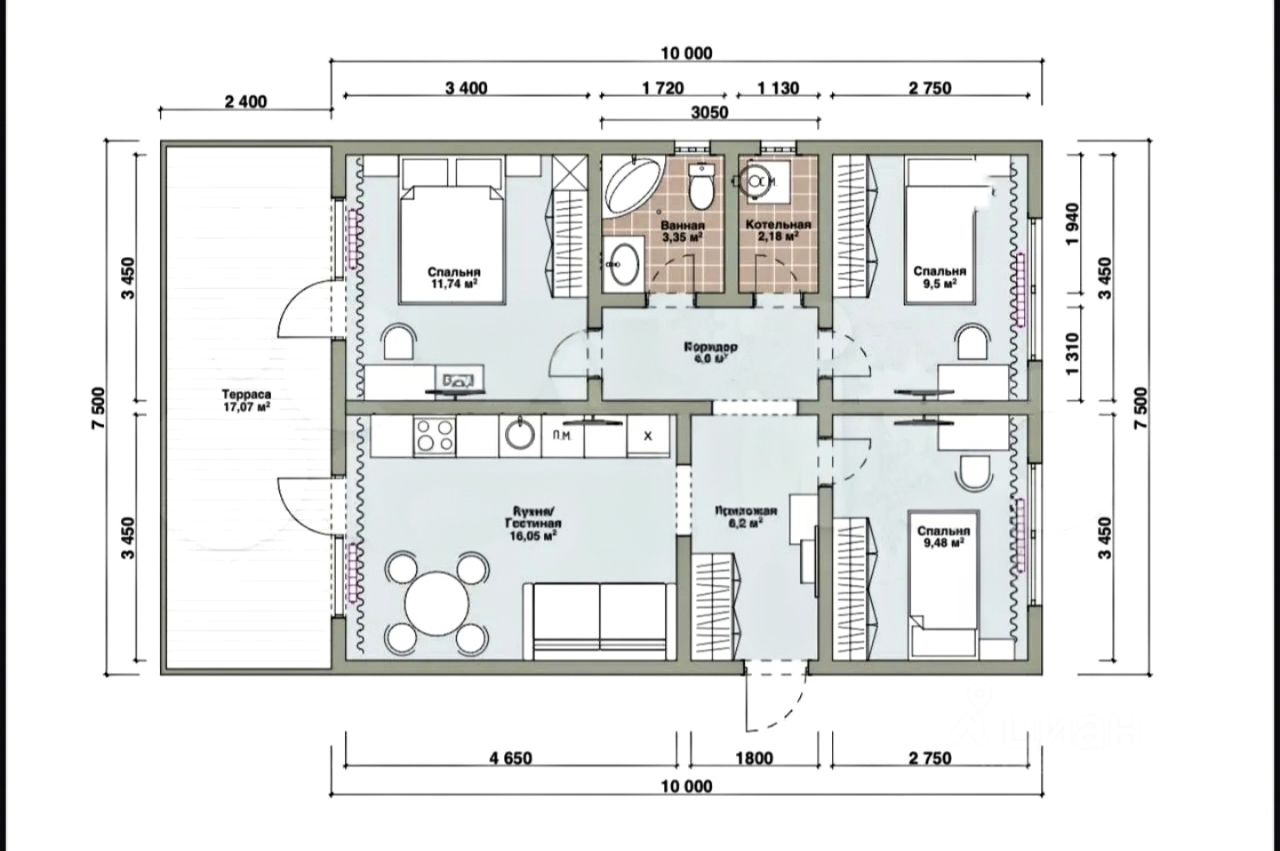 О доме: Дом состоит из двух изолированных комнат, (или всего + 100 тысяч рублей за дом с тремя спальнями), просторной кухни- студии, функционального коридора, вместительной прихожей, совмещённого санузла и террасы. Дом располагается на земельном участке, площадью 5 соток.