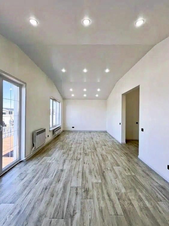 Возможна, внутренняя отделка по Вашему выбору: ''Под отделку — 6 499 000 ? -тёплый пол, -радиаторы отопления, -вентиляция, -бетонная стяжка, -1 слой ГКЛ. -электричество (15 кВт, 380 В) уже заведено в дом, -септик (2 кольца по 1,5 м), ''White Box — 7 290 000 ? Включает всё из Под отделку +: -2 слоя ГКЛ, -разводка электрики (кабель по ГОСТ), -розетки и выключатели, -отштукатуренные и окрашенные в белый цвет стены. ''Отделка под ключ — 7 890 000 ? Включает всё из White Box +: -полукоммерческий линолеум с толстой подложкой, -оклейка стен обоями с нанесением дорогой латексной краски, -дорогие межкомнатные двери с шумоизоляцией, -водонагреватель, -разводка труб в санузле под водоснабжение, -натяжные потолки, -повторяющие скосы крыши.