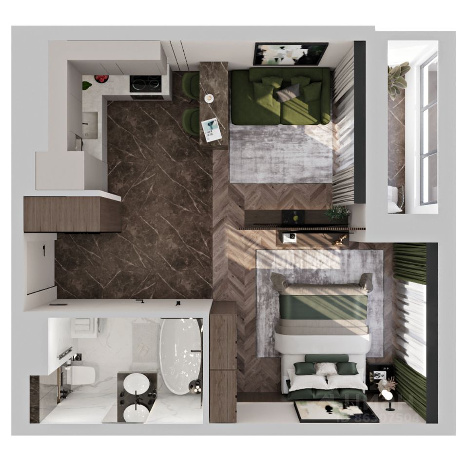Продаётся 1-комнатная квартира в строящемся доме (Дом 1), срок сдачи: I-кв. 2027, общей площадью 38.37 кв.м., на 11 этаже.
