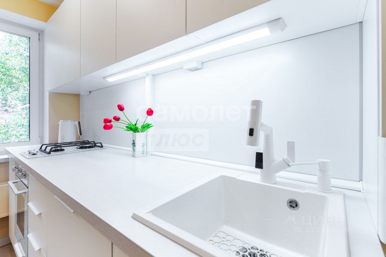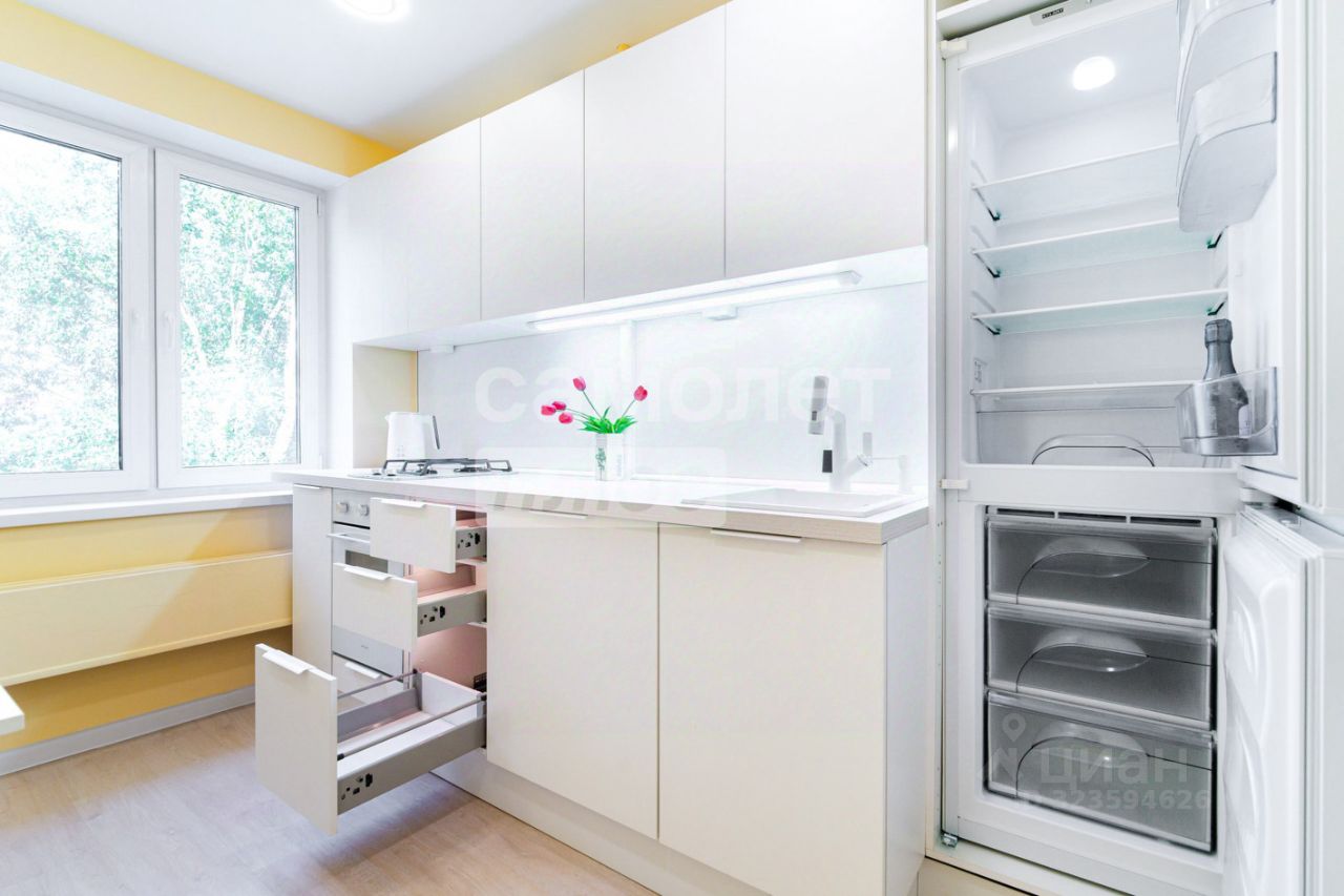 - мебель и бытовая техника новые - в кухонный гарнитур встроены холодильник и стиральная машина - шкафы и выдвижные ящики с подсветкой - все хозяйственные принадлежности на своих местах, продумано до мелочей