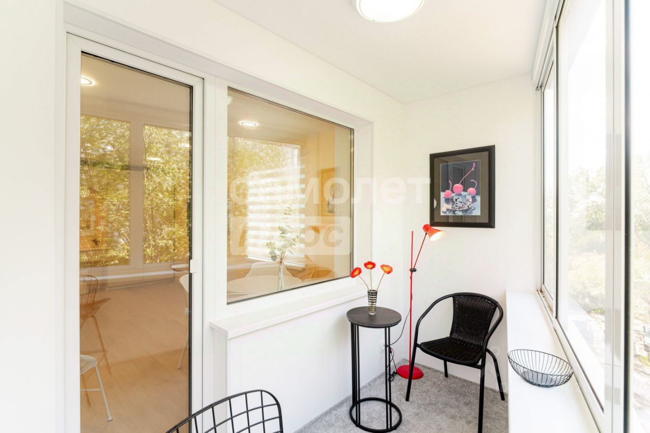 - оборудован как дополнительное место отдыха - расширен проем балконной двери для комфортного прохода - пол деревянный, настелено мягкое ковровое покрытие - стены и потолок обшиты белыми матовыми ПВХ-панелями - установлена настенная складная сушилка для белья - балкон освещается потолочным светильником - к электророзеткам можно подключить торшер, новогодние гирлянды и пр.