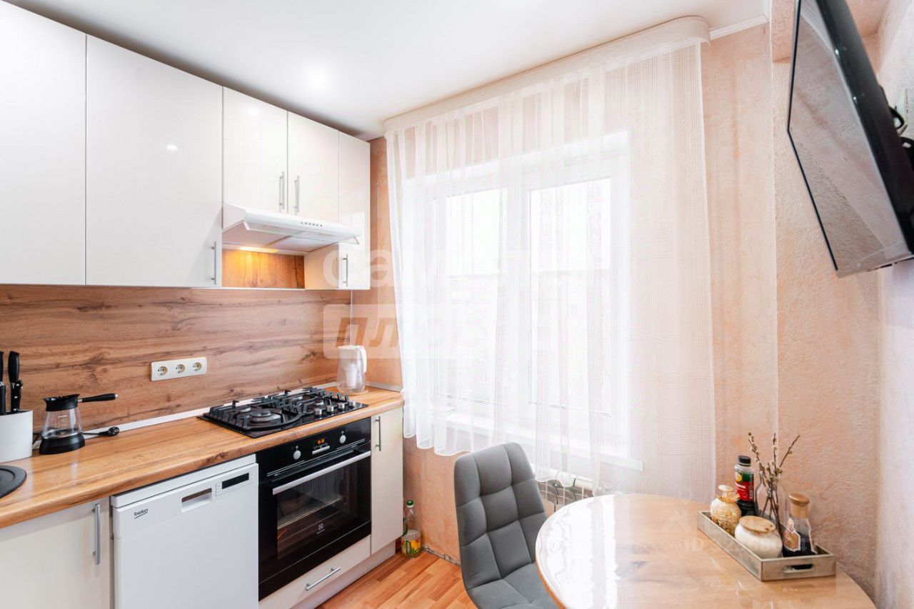 Квартира после капитального ремонта: полностью заменены электрика и коммуникации. Удобная планировка включает две отдельные спальни, просторную гостиную, кухню и совмещённый санузел.