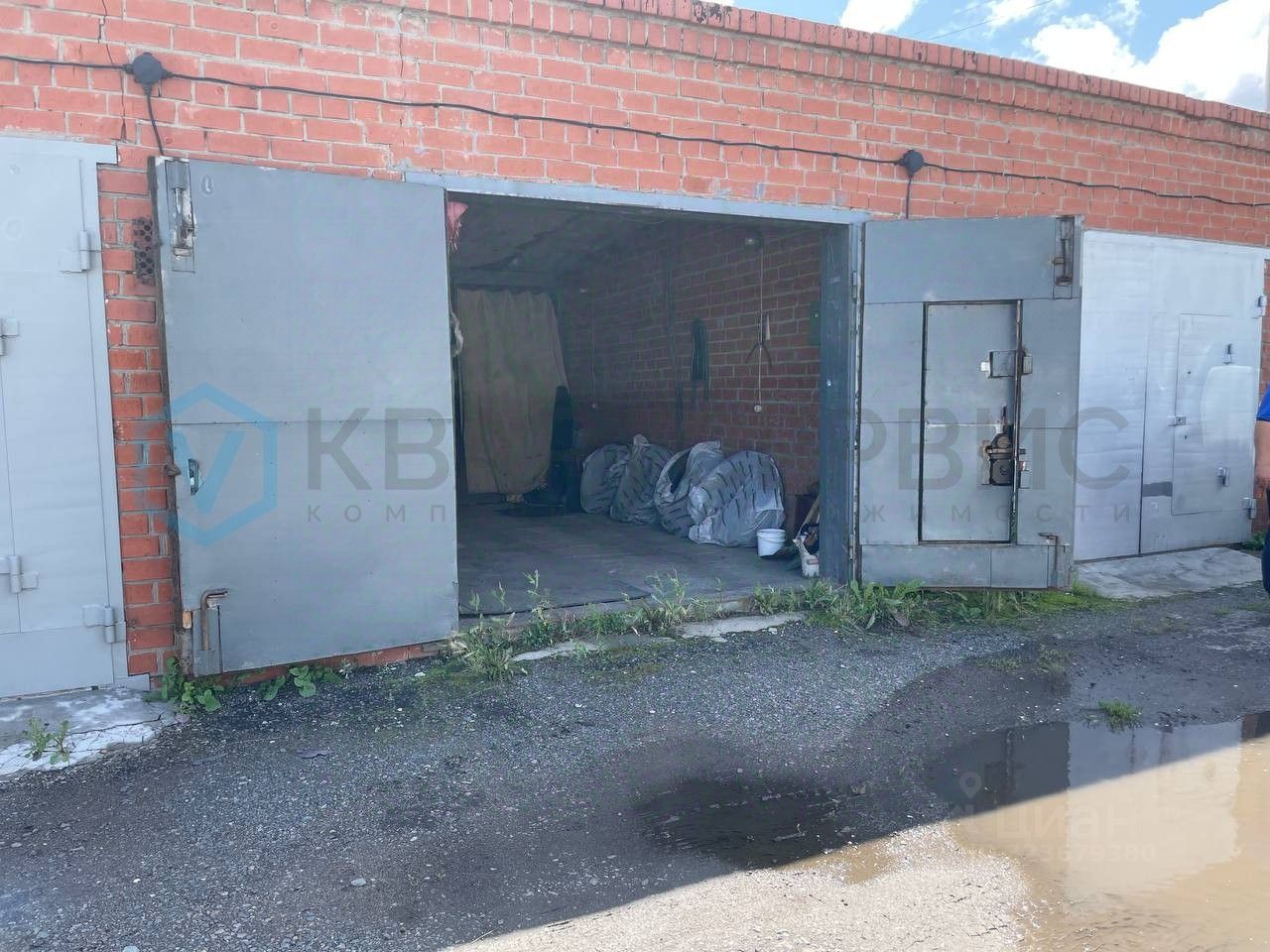 Гараж оснащен электричеством, полками и большими воротами (помещается газель). Удобное расположение и подъездные пути.