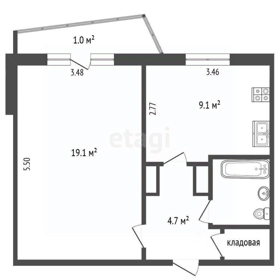 Просторная однокомнатная квартира в поселке Светлом предлагает рациональную планировку, где выделяется большая комната 19.1 м² с выходом на застекленный балкон и изолированная кухня площадью 9.1 м². В прихожей организована зона для гардеробной, санузел совмещенный.