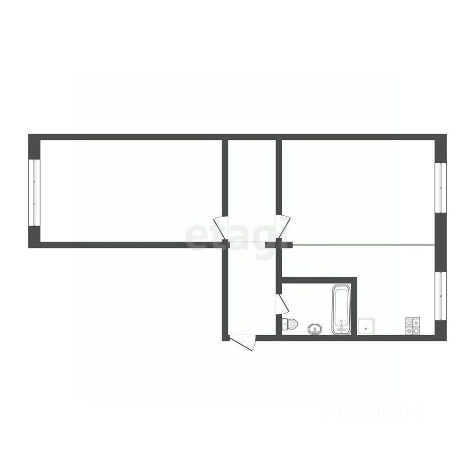 Общая площадь 42,2 м² с продуманной планировкой типа ''бабочка'' и косметическим ремонтом.