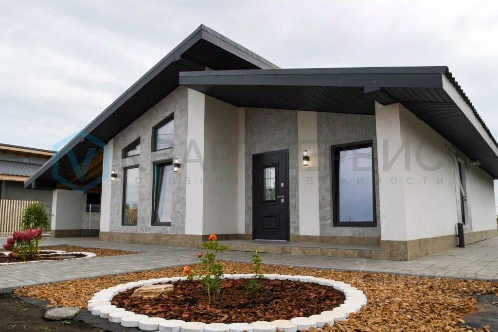 О доме: •При строительстве дома использовались качественные материалы ( арбалитовые блоки ), фасад выполнен в современном стиле (штукатурка + плитка). •Внутри комфортная планировка с просторными комнатами и высокими потолками. •В доме 2 изолированные комнаты, просторная кухня-гостиная, 2 раздельных санузла со всей необходимой сантехникой, терраса с теплым полом. Имеется крытый паркинг и мастерская. •В доме есть всё необходимое для комфортного проживания: электрическое отопление, теплый пол, водопровод, электричество, септик, вентиляция . •Приятный бонус - кухонный гарнитур и сантехника! •Территория находится под видеонаблюдением и охраной.