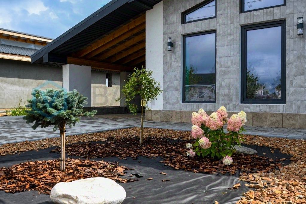 О доме: •При строительстве дома использовались качественные материалы ( арбалитовые блоки ), фасад выполнен в современном стиле (штукатурка + плитка). •Внутри комфортная планировка с просторными комнатами и высокими потолками. •В доме 2 изолированные комнаты, просторная кухня-гостиная, 2 раздельных санузла со всей необходимой сантехникой, терраса с теплым полом. Имеется крытый паркинг и мастерская.