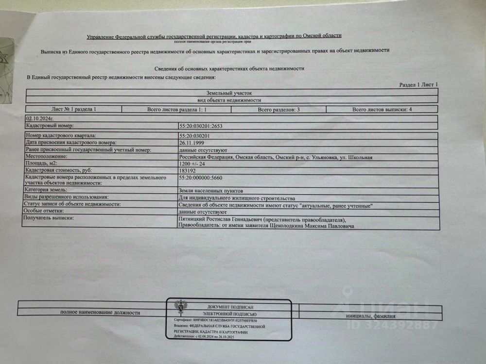 Предлагаем к продаже земельный участок под ИЖС, кадастровый номер 55:20:030201:2653,в границах Богословского сельского поселения, с Ульяновка. Участок в собственности, межевание есть, газ и вода по границе участка.