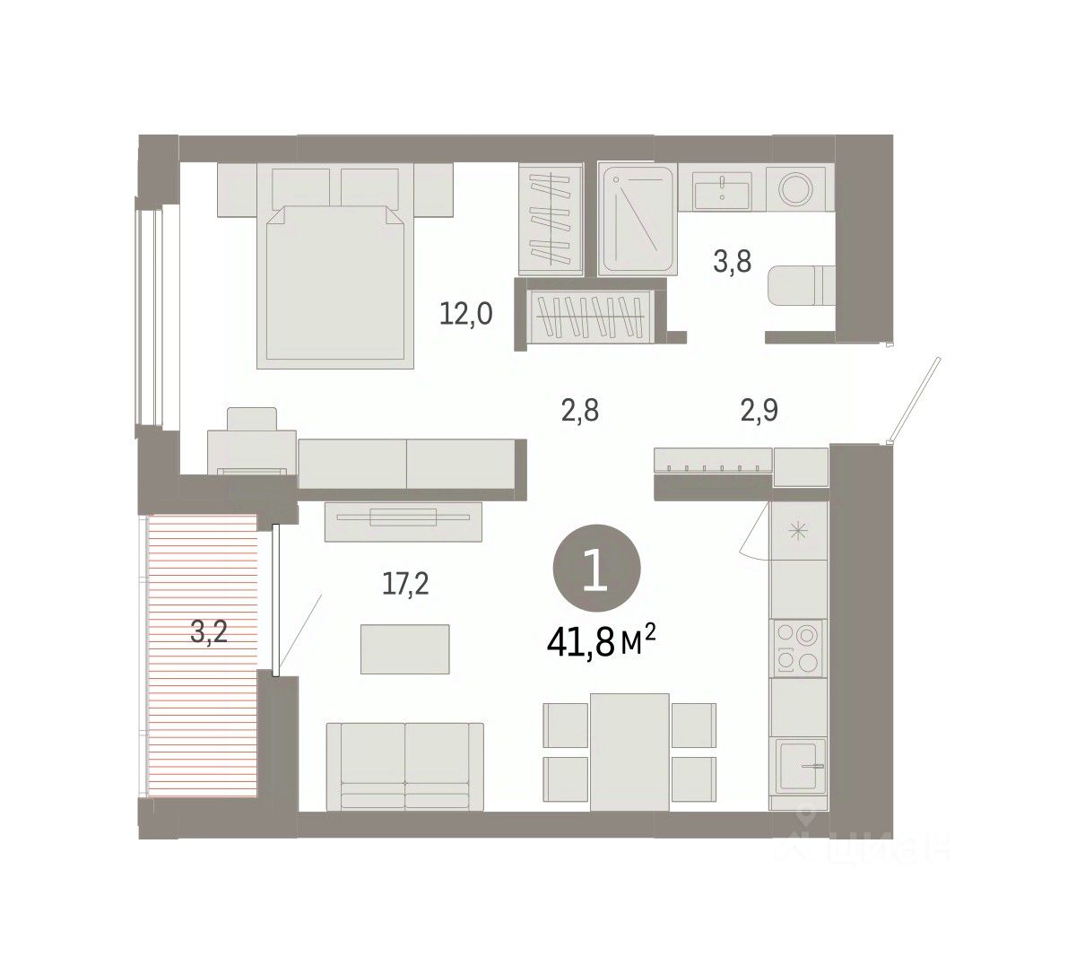 Общая площадь41,84 м2