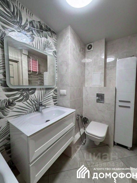 Санузел облицован керамической плиткой.