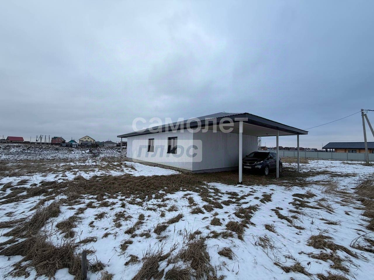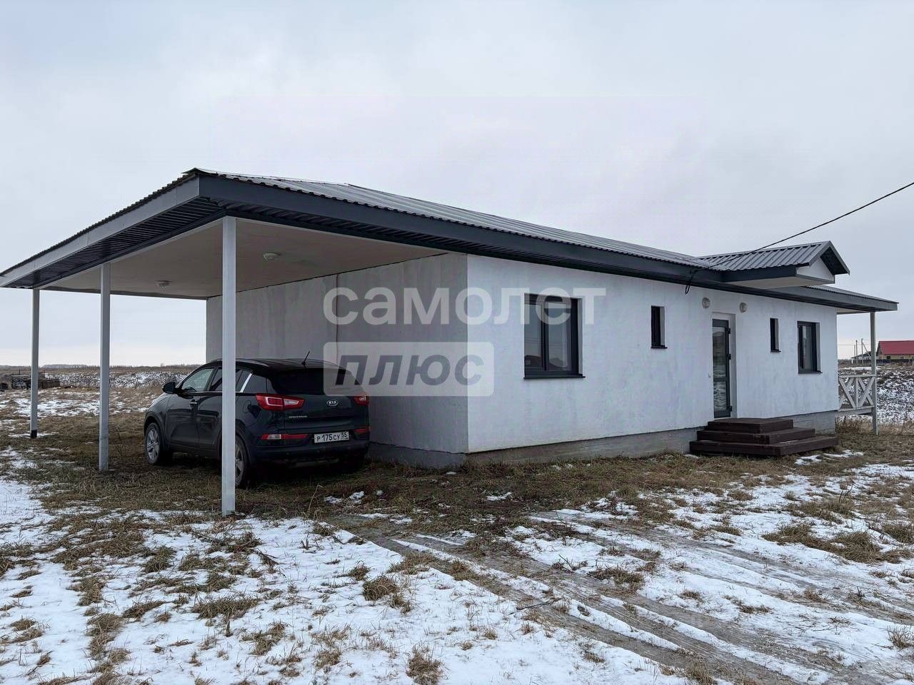Внешняя территория: Навес под два автомобиля защищает транспортные средства от погодных факторов. Зелёный участок расположен на возвышенности. Площадь 8 соток позволяет благоустроить участок, не ограничивая свои желания.