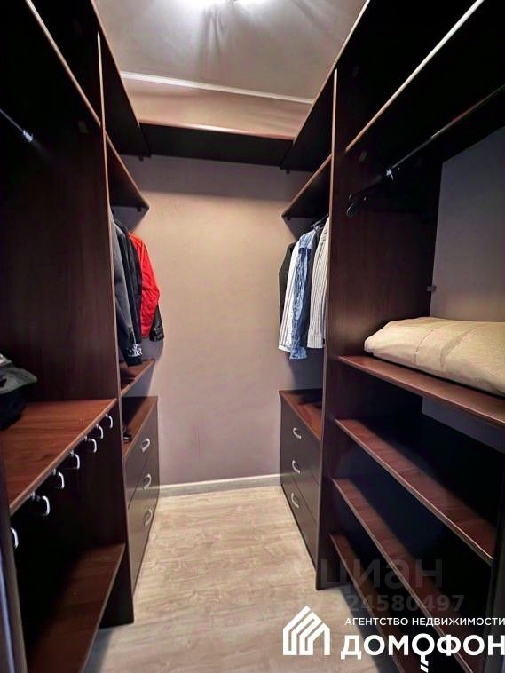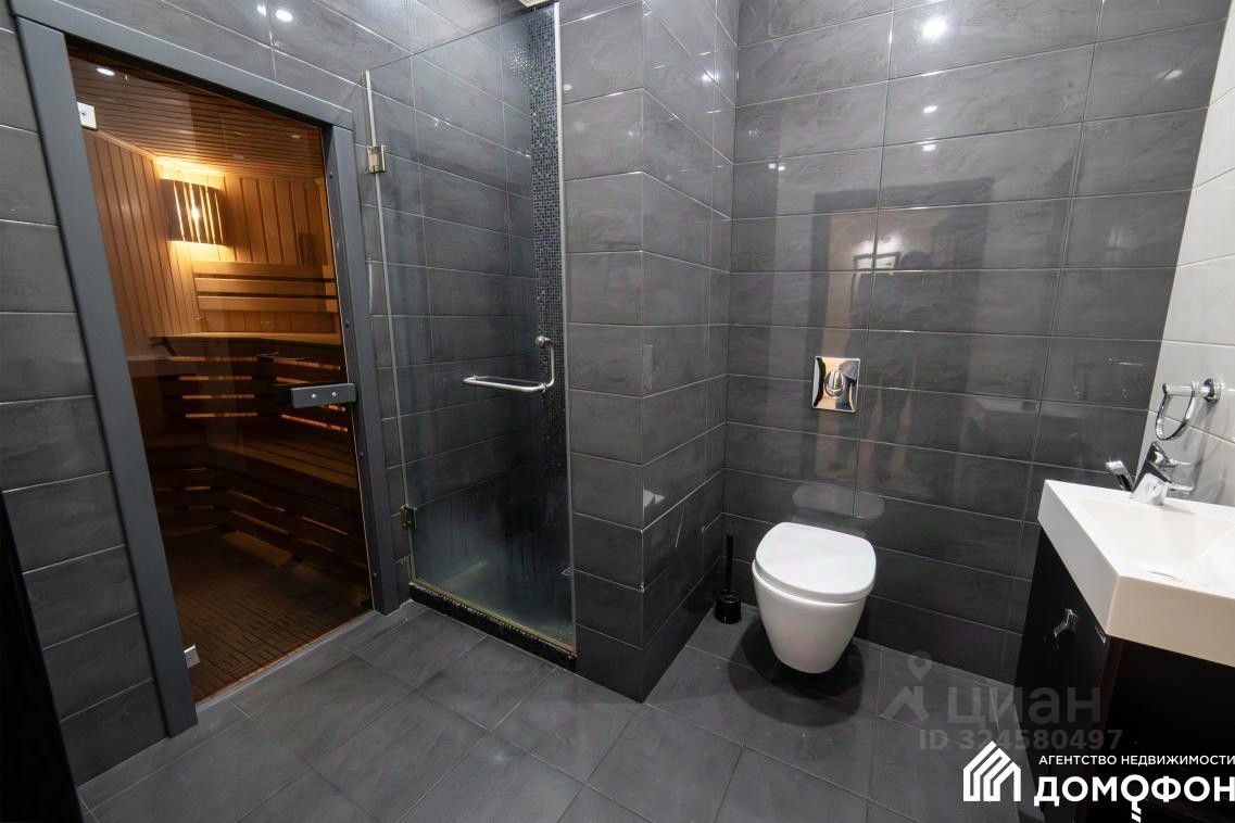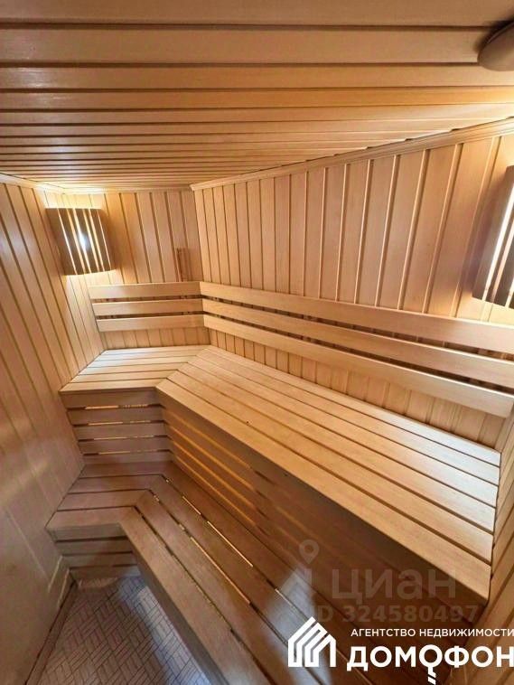 Просторная кухня — гостиная, две изолированные комнаты, в одной из которых размещен гардероб, в другой — вместительный встроенный шкаф, 2 санузла, в одном из которых находится сауна и прачечная.
