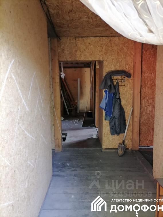 АН Домофон предлагает на продажу Каркасный дом. Обшит профлистом, внутри OSB. Первый этаж утеплен (эко вата). Фундамент 80 см, стоит на песчаной подушке (глубина подушки 70 см). Окна ПВХ. Свет подведен (круглый год), вода и газ не заведены, но все коммуникации рядом. На первом этаже по плану 2 комнаты, кухня и санузел. Второй этаж свободная планировка. В наличии деревянная поворотная лестница в разобранном виде с инструкцией по сборке. По наружному 140 кв.м. Высота потолков 2,60 м по каждому этажу. Крыльцо черновое (временное). Есть погреб ( без отделки), глубина 2м - 2:30м, 3*2.