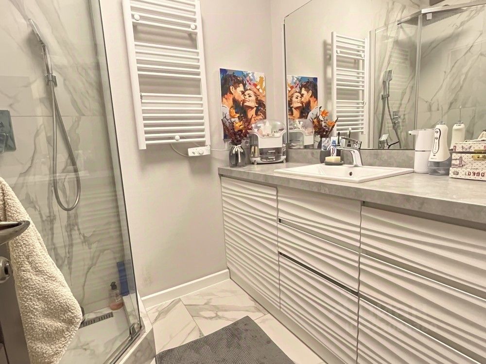 В квартире выполнен ремонт современными отделочными материалами: - окна ПВХ - выровненные и натяжные потолки - пол ламинат и частично - напольная плитка - кафель на полу и стенах в сан.узлах ( су раздельный, в ванной душевой уголок ) - скрытые карнизы - в двух спальнях - французские окна с выходом на балкон.