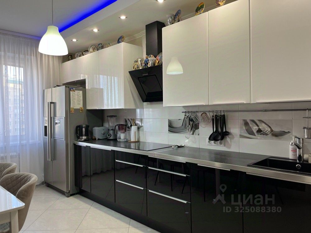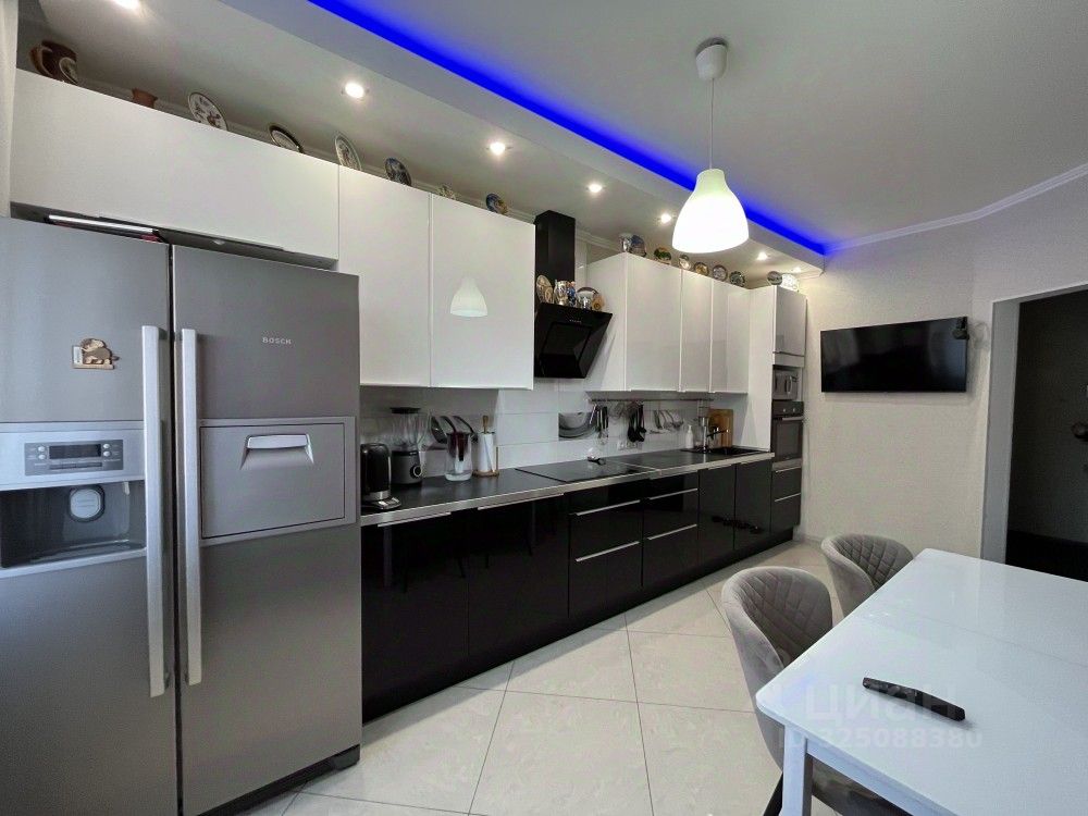 Квартира укомплектована мебелью и бытовой техникой, остаётся кухонный гарнитур и три встроенных шкафа.