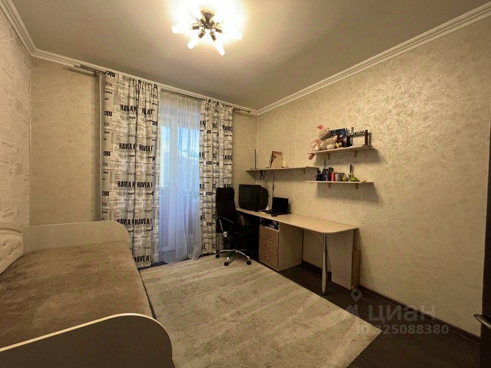 В квартире есть интересное помещение, гостиная или жилая комната, с закруглённой стеной. Она требует ремонта, но конструктивно - является украшением всей квартиры. В целом планировка - отличная.