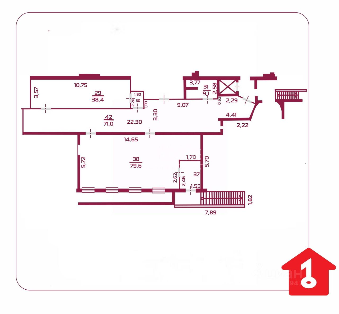 Преимущества объекта: - центральное расположение в городе, - свободная планировка, - возможность использования помещения под различные виды деятельности, - отдельный вход, - круглосуточный доступ.