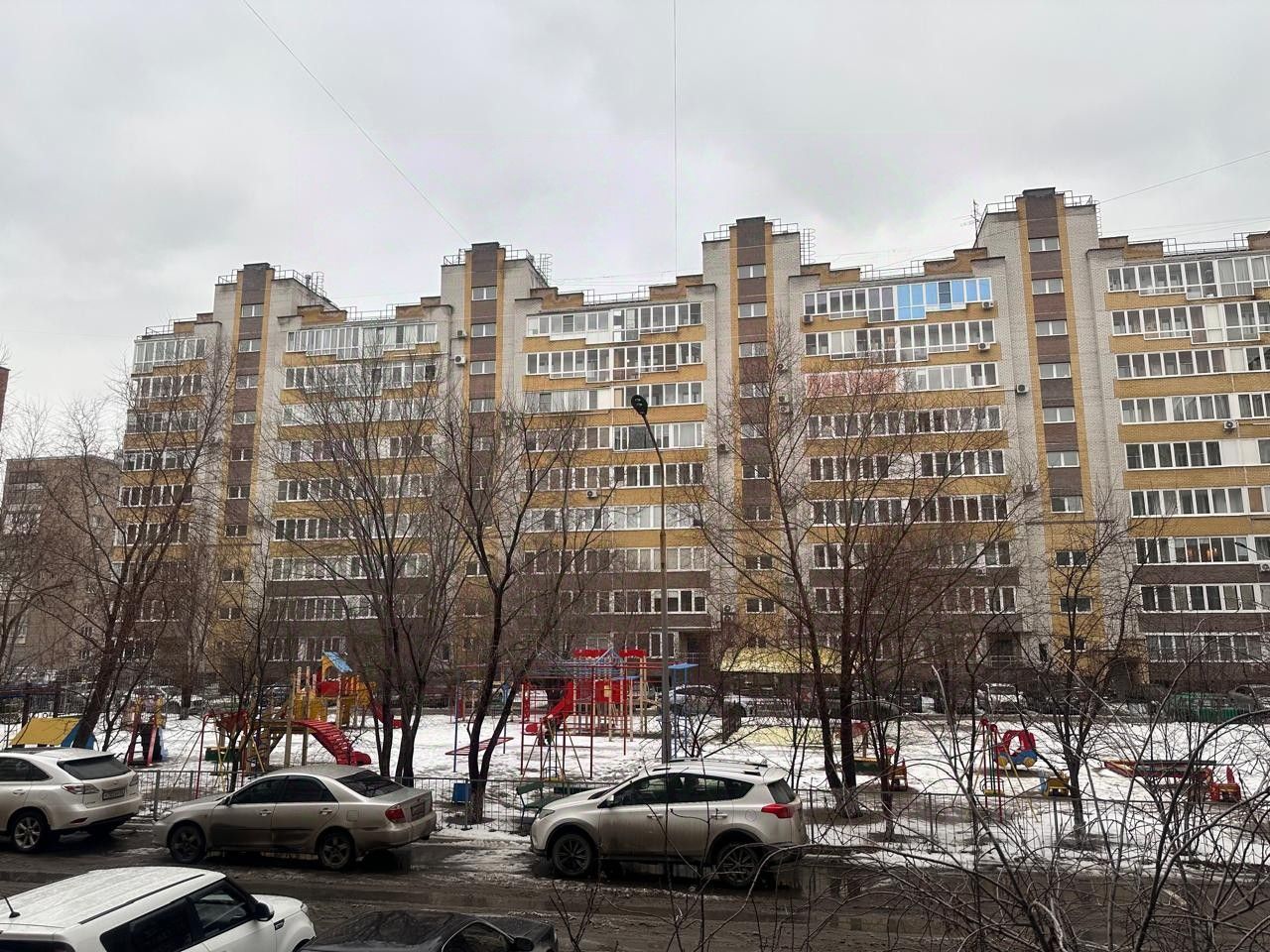 Просторная кухня-гостиная с выходом на балкон, окна во двор на детскую площадку.